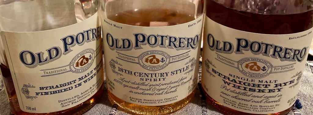 Old Potrero (Chardonnay Cask Finished SiB, 110.6 proof / 18th Century Style Whiskey, 102.4 proof / Straight Rye, 97 proof) — I first tried the Old Potrero 18th Century Style Whiskey back in 2016 and found it overwhelmingly, off-puttingly perfumey. Aged a short 2 years 6 months in toasted, not charred, barrels, it’s very grainy and light with a grassiness that bursts a bit into floral territory. Three years on and many more ryes having influenced my tastes, I can now appreciate the vibrant details this bottle has to offer. But as I’ve also come to love the much more darkly complex Old Potrero single barrel ryes, that’s where I’m going to put my money. The standard rye is also good. Decently aged for 4 years 6 months in charred oak barrels, it offers spritely baking spices among its fragrant field of hay and rye and other long reedy grasses. The single barrels then amp all that up, both in age (often about 6 years) and proof (anywhere from 110 to 125). The particular single barrel we sampled tonight was finished in a chardonnay oak barrel, which couldn’t be better suited to Old Potrero’s 100% rye mash. There is something very special and particular going on in Old Potrero, a roughness that conjures the rambunctious old Barbary Coast of San Francisco lore. It’s a conversation starter with the kind of strong personality that isn’t for everyone. But for me it’s lively, entertaining, provocative, and always on my shelf.