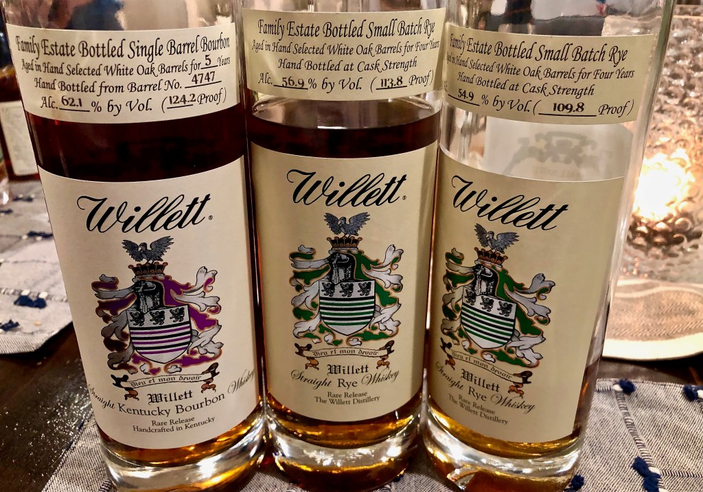 Willett (5 year SiB Bourbon Barrel #4747, 124.2 proof / 4 year SmB Rye, 113.8 proof / 4 year SmB Rye, 109.8 proof ) — Okay. Willett. The rye that made me love rye. I’ve compared this 4-year Rye 113.8 proof and 5-year Bourbon 124.2 proof to one another already. I’d not had the 4-year 109.8 proof before, though I’ve enjoyed other batches—a 107.2 and 126 proof among them. The 4 degree proof difference between the 109.8 and 113.8 was noticeable, with the 109.8 feeling more laidback and the 113.8 brighter and poppier. The Willett bourbon has a “barely legal” mash bill, meaning the mash bill has just over the minimum percentage of corn to qualify as bourbon. This leaves it tasting very like the Willett ryes, themselves reportedly likewise made from a “barely legal” rye percentage. Not as rough as Old Potrero, but similarly wild, Willett ryes and bourbons abound with other flavors like chocolate, prune, apricot, tangy caramels, and bright spices like cinnamon and cardamom. The higher-priced, slightly older Willett single barrel ryes and bourbons don’t justify the extra cost for me, since the standard 4-year small batch release is itself so consistently tasty and surprising. There will always be an open bottle of Willett 4-year on my shelf.