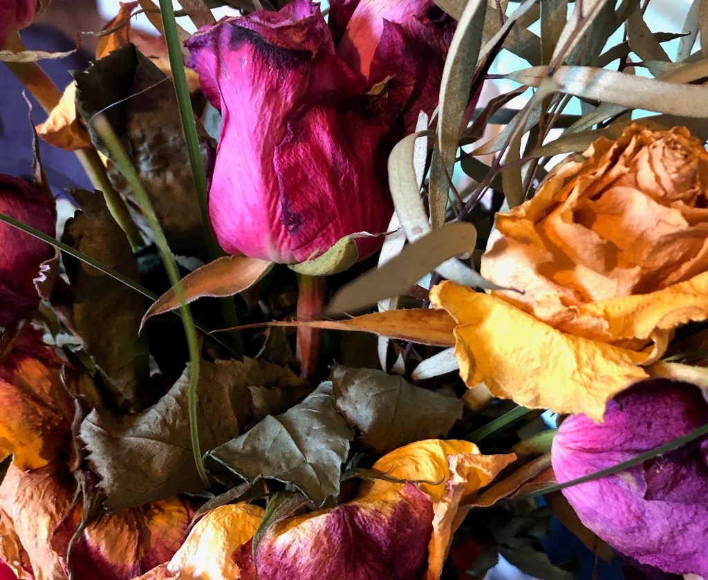 As I wrote that, I looked up and my eye caught these flowers drying in a vase on the table where I sat. Their colors and textures perfectly capture the floral aspects of this bourbon: