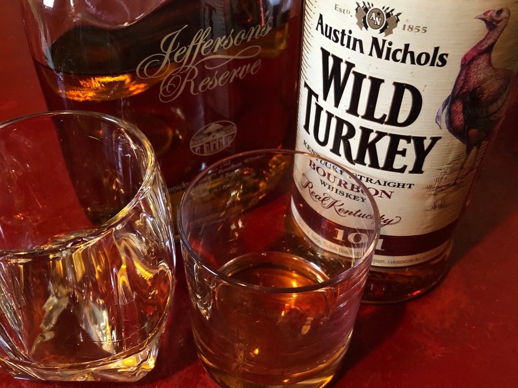 Where the Jefferson’s nose presents a bouquet of colorful dried flowers sprinkled with cinnamons, the Wild Turkey offers caramel dusted with cinnamons and other baking spices. The Wild Turkey then tastes of caramel, cinnamon, sparkling baking spice, all vibrant and ready for a hearty laugh. Next to it, the Jefferson’s tastes more subdued now, thinner, yet still bright with autumn flowers and light buttery caramels. They each then finish warmly and comfortingly, with the Wild Turkey a bit more peppery than the gentler Jefferson’s.