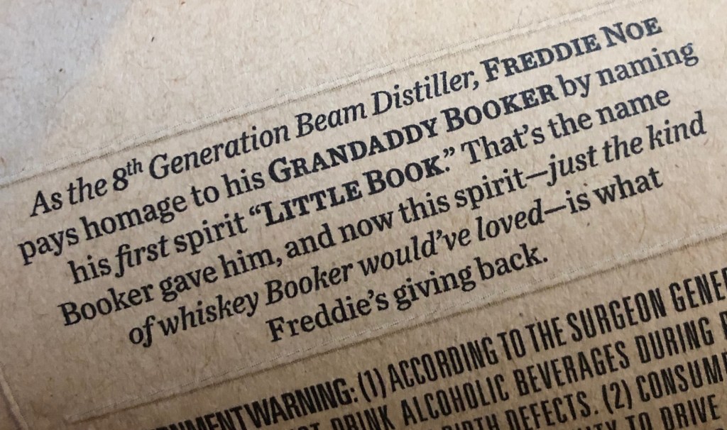I was very excited by the prospects of Little Book 3 when I read about it. The blend of well-aged Jim Beam bourbons sounded like bourbon heaven. The four lines included in the blend (Basil Hayden, Knob Creek, Baker’s, and Booker’s) are like a band of brothers. Basil Hayden, with its fancy packaging and too friendly 80-proof, has never really held my attention. It’s the Horatio bourbon of the four—as friendly as it is forgettable. Knob Creek, with its characteristic robust extremes, has been hit and miss for me—though any “miss” has never been bad, maybe just too familiar to stand out. Whereas the Knob Creek “hits” are like good fireworks on a dark night, colorful and bright and rich. As for Baker’s, it’s been two years since I enjoyed making my way through a bottle of it, which struck me from first to last ounce as a gateway Booker’s, tame and steady by comparison. Booker’s, of course, is my touchstone—a dependable wild card.