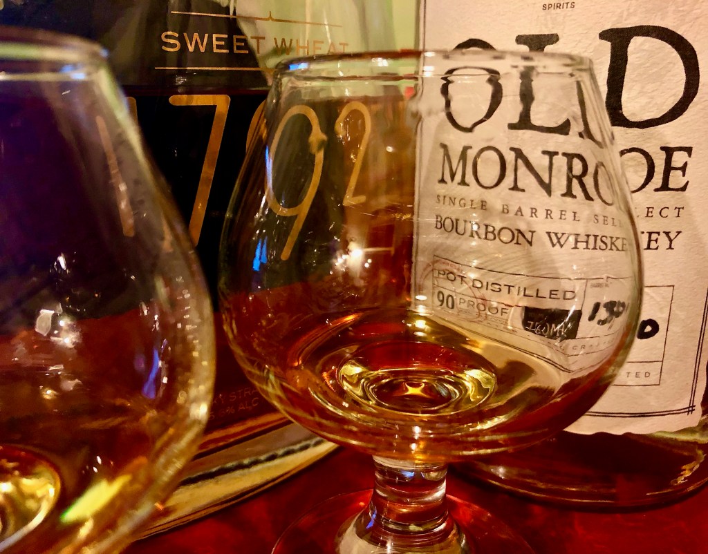 I thought immediately of the Old Monroe Single Barrel Select, a craft wheater from Stumpy’s Spirits, which I’d recently tasted. The 1792 Sweet Wheat offers a similar but softer profile. Curious, I poured a glass of Old Monroe: