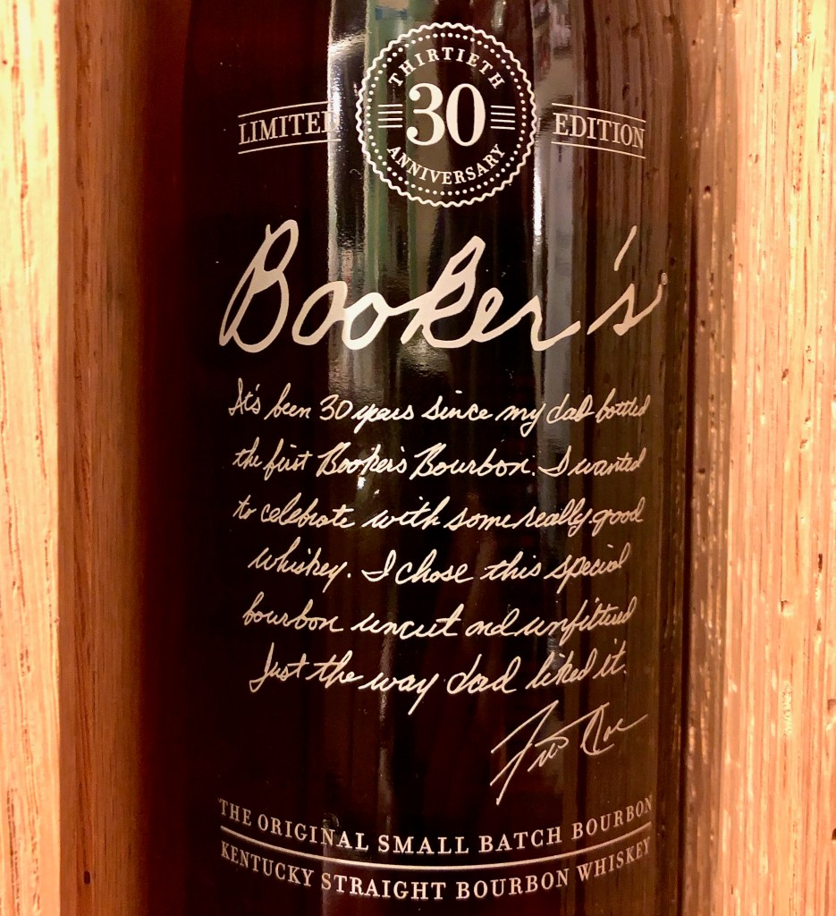 So, my journey with Booker’s continues. Booker’s made me fall in love with bourbon, and I suspect if my dying day goes well it will involve, among other things, a nice long Kentucky hug from some special bottle of Booker’s like this 30th Anniversary edition.