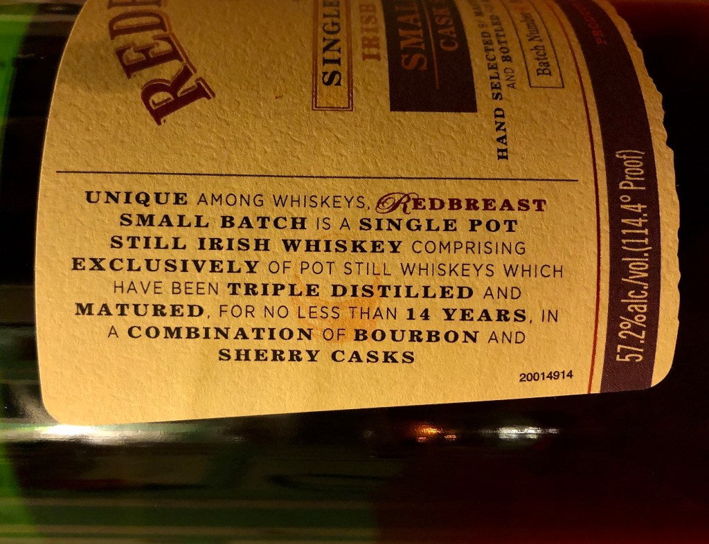 How does that spirit translate into the taste of the spirit itself? With this special edition Redbreast, for me it’s the lively, almost witty combination of rich cream flavors with bright fruits. The nose, taste, and finish all seem to shimmer and sparkle like the color of the whiskey does when rolled around in the glass. The 14 years of aging ground it in the barrel oak’s natural vanilla flavors, with a boost of fruitiness from the sherry casks and robust caramels from the bourbon casks. It all conjures a fun party with live music, dancing, rousing conversation, hearty laughs, and some swaying sentimental song sung by everyone at night’s end. I literally feel a bit more awake, ready to get up and dance, as I sip at it. It’s hard to stay seated and write up these notes!