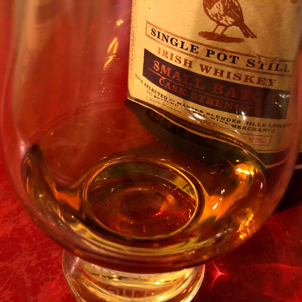 This would make a very convincing introduction to someone new to either Irish whiskey or whiskey in general. It’s complex while also very approachable. It’s rich, but at the same time clear and clean and simple in its overall impact. The strong 114.4 proof asserts itself with a remarkably easygoing confidence. The triple distillation has smoothed out the distillate’s rough edges without at all diminishing the layers of flavor gained from substantial time in some very well chosen barrels.