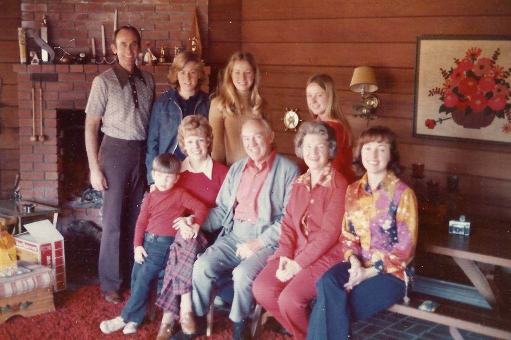 I can still see myself sitting there on the brown leather coach. The brick hearth to my right. The Seese Candy milk chocolate color of the wood-paneled walls, studded with crooked lamps and knickknacks. Little handmade awards or photos from 1950s Rotary Club parties. A black-and-white photo of my mother cheerleading in college. A handmade framed tribute honoring my grandparents’ many years of marriage. My mother kept updating the number on it as the years rolled on—69 in all by the time my grandfather passed away.