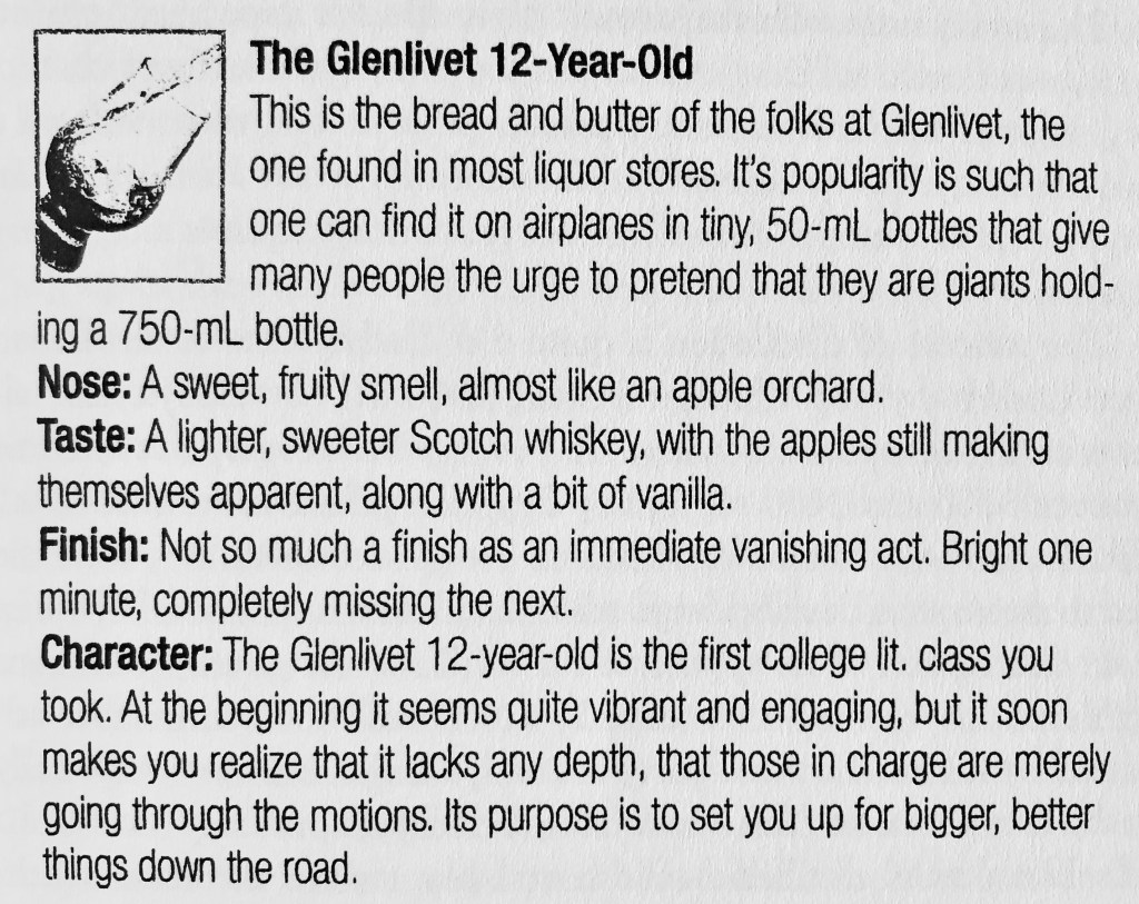 I do suspect if Hopkins were to write the same book today, the deluge of information that’s come out around whiskey in the past decade—offering the average aficionado much more inside-scoop via a quick Google than was possible in 2009—might meld with her humor to result in a much more actively engaging travelogue. As it stands, 99 Drams of Whiskey is itself like an average whiskey: pleasant enough aroma up front, tastes perfectly fine in the moment, a short unmemorable finish, likely not to be reached for too often.