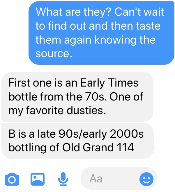 The bottles we had traded involved Wellers and Jefferson’s Presidential Select. So if I leaned into psychology, I could posit that he may have picked samples related to either of these brands. Or perhaps he chose something to contrast them. Or maybe he made his selection according to some other logic entirely.