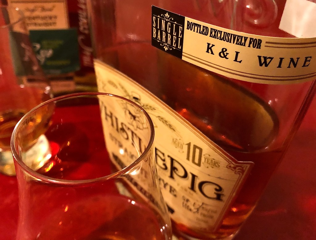 What the precise factors are that unite the flavor profiles of these two whiskeys so closely I cannot say. But it’s striking! As ever, I don’t wish to declare one or the other “best.” There’s very little meaning in that beyond marketing. More meaningful, if still on the capitalist theme, is the fact that this Wilderness Trail single barrel, cask strength rye, which could be aged anywhere from 4 to 8 years, costs $65. Not cheap. But the WhistlePig, a single barrel, cask strength offering, age-stated at 10 years, costs $98. Peerless Rye, which I would also put at the level of these two in terms of a tasting experience, runs $108.