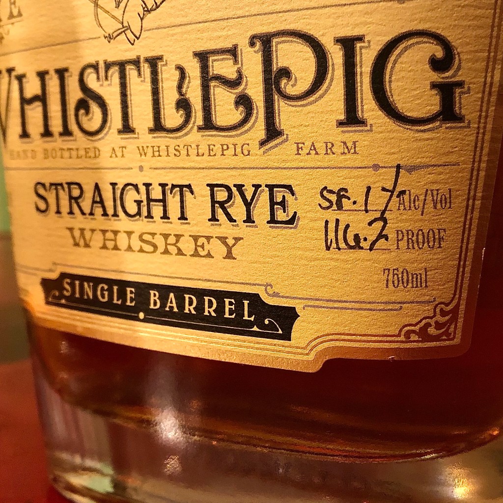 WhistlePig sources its rye from Alberta, Canada, then ages it in Vermont, finishing it in bourbon barrels. That’s quite a different journey from Wilderness Trail’s local Kentucky grains, copper pot distillation, and low 100 entry proof. I don’t know what the Canadian distillate’s entry proof or distillation mechanism is. I do know the Canadians generally tend to use more rye in their mash bills than Kentucky, and that this WhistlePig itself is a 100% unmalted rye mash.