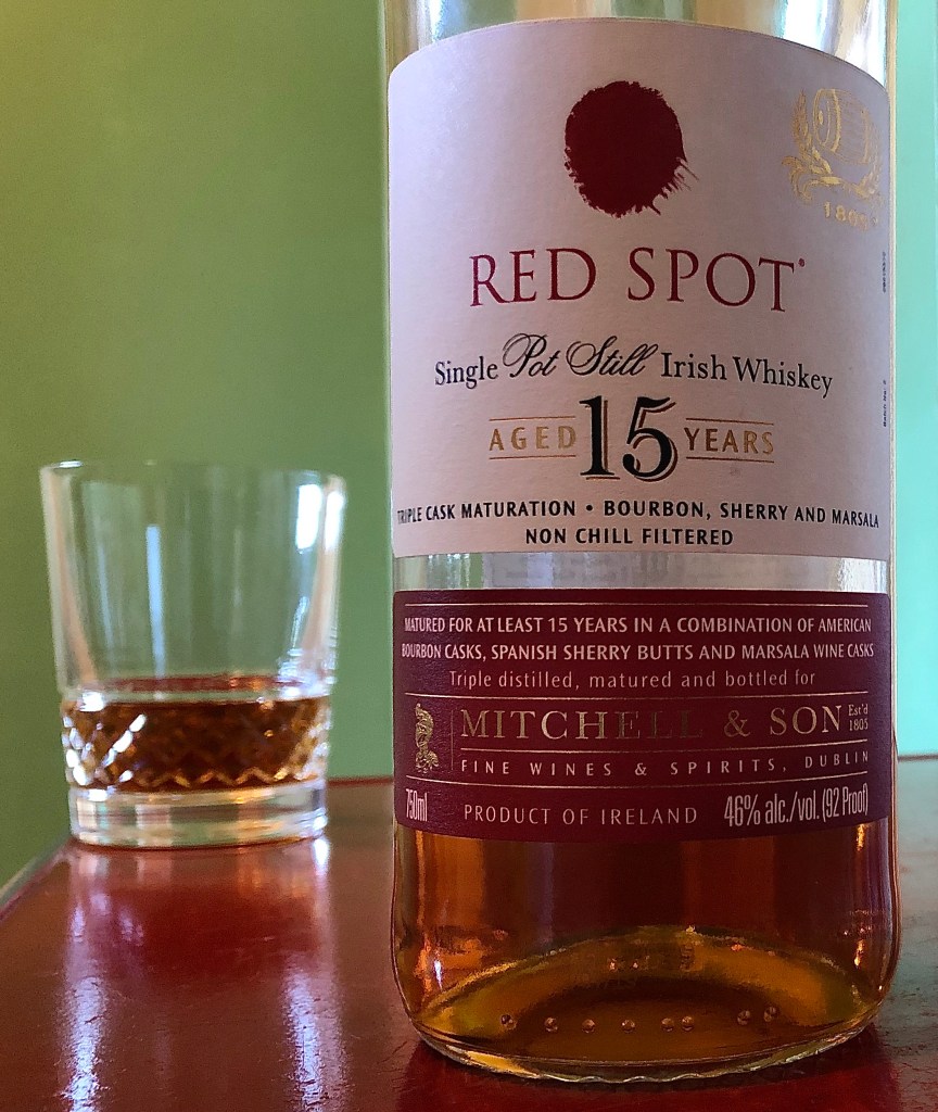 Time passed and I had a glass of Redbreast 21 Year, which raised my eyebrows a bit. But I remained unconvinced. A bottle of Writer’s Tears Double Oaked was fine but didn’t bring me around any further. Then more recently I enjoyed an exceptional limited release Redbreast 14 Year batch that really swept me away. This prompted me to pick up this bottle of Red Spot, the eldest sibling of the Spot Whiskeys—the others being Yellow (12 years), Green (a blend of 7 to 10 year whiskeys), and variations on the Green finished in specific wine casks.
