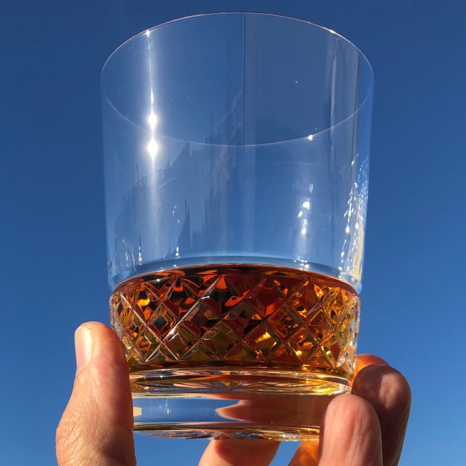 And so as the bottle was now nearing its end, I figured it was time for an official tasting. Here are notes on some of this bottle’s final ounces, tasted in a genuine Irish crystal glass, the design of which allows one to neatly measure out two full shots. It’s a glass that encourages indulgence. And it works!