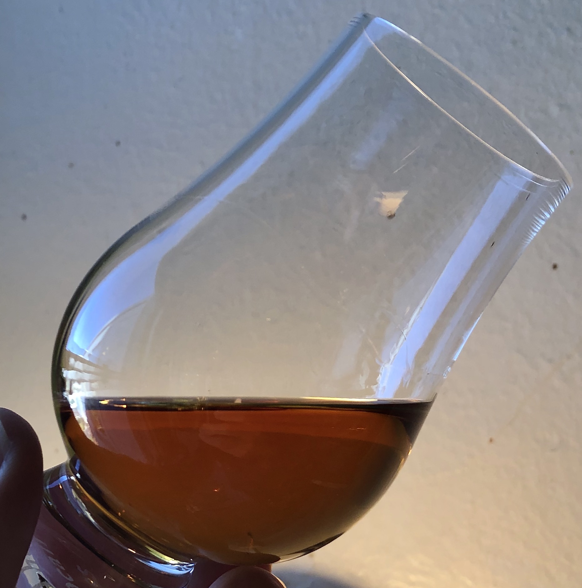 A very satisfying, if not particularly surprising, comparison. The similarities in taste are accurately reflected in the similarities of the photos above—photos 1 and 2 being Old Charter, photo 3 Eagle Rare on left and Old Charter on right, and photos 4 and 5 being Eagle Rare. Given my initial impression was that the Old Charter was a touch darker, at one point I wondered if I’d mixed up the glasses when suddenly the Eagle Rare was appearing darker. But I had the glasses correct, so, each being close cousins in many respects, they both play with the light in similar ways.