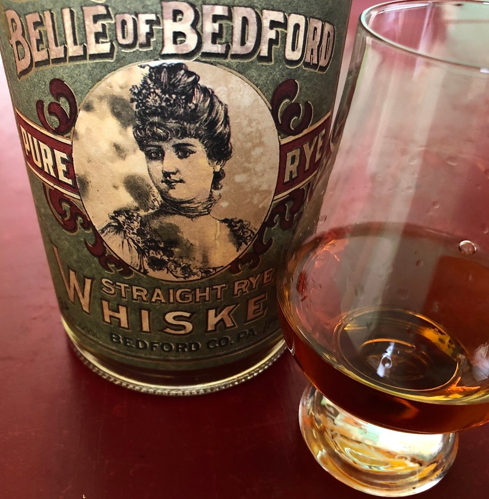 The gorgeous label struck me right away. But what’s a label worth? I did some Googling. There were zero reviews of Belle of Bedford that I could find. A few other online retailers were selling bottles from $80 to $120, some of them the standard 104-proof release and some cask strength single barrels. The distillery itself provides only a simple one-page website. And their Instagram account has only two posts—one from 2014 featuring the original label etched in glass circa 1890, and one from 2020 of a customer buying a bottle at Jack Rose Dining Saloon in Washington, D.C.