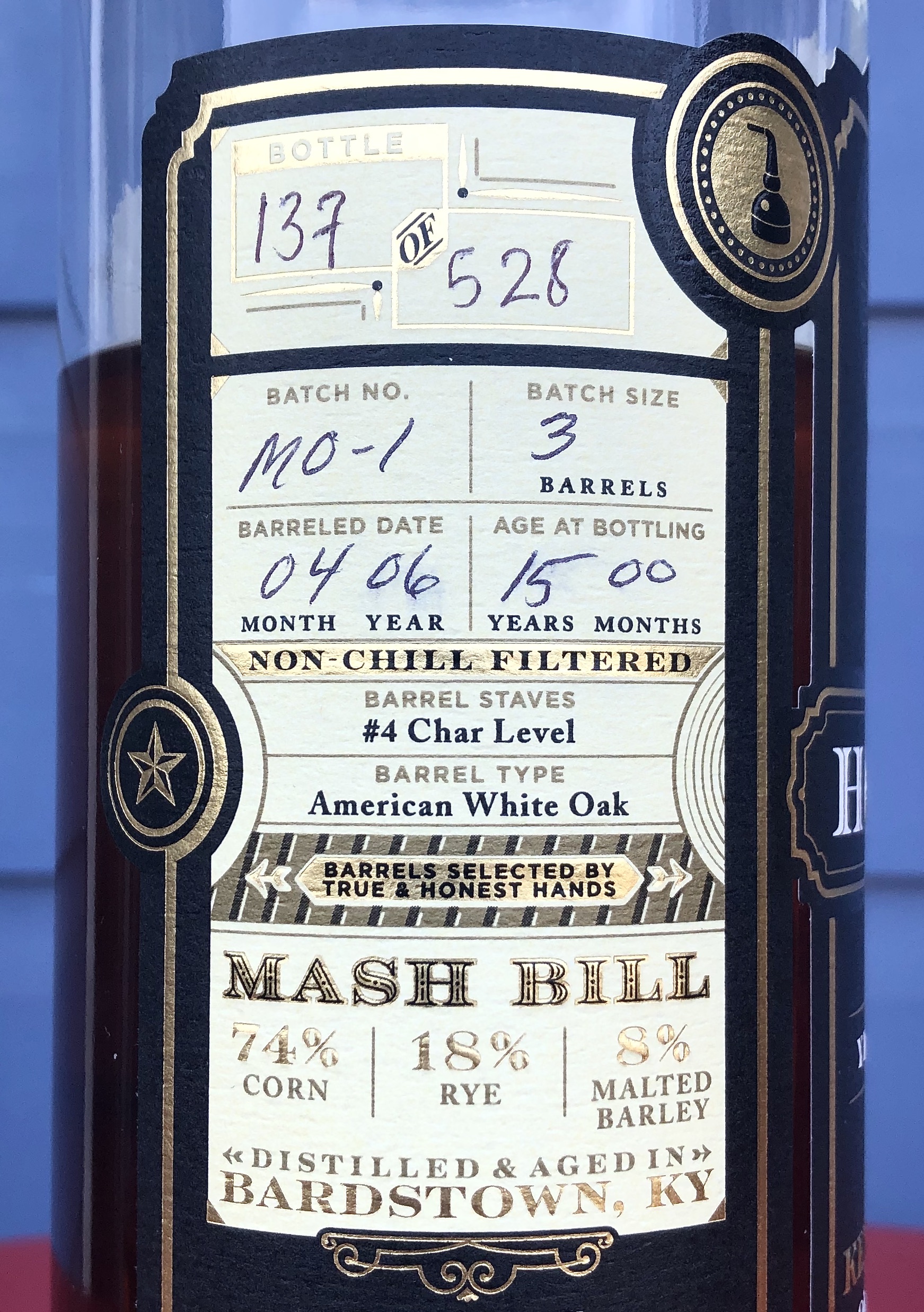 Release No. 6 Batch MO-1 (2021)MASH BILL – 74% corn, 18% rye, 8% malted barley (i.e. Barton)
