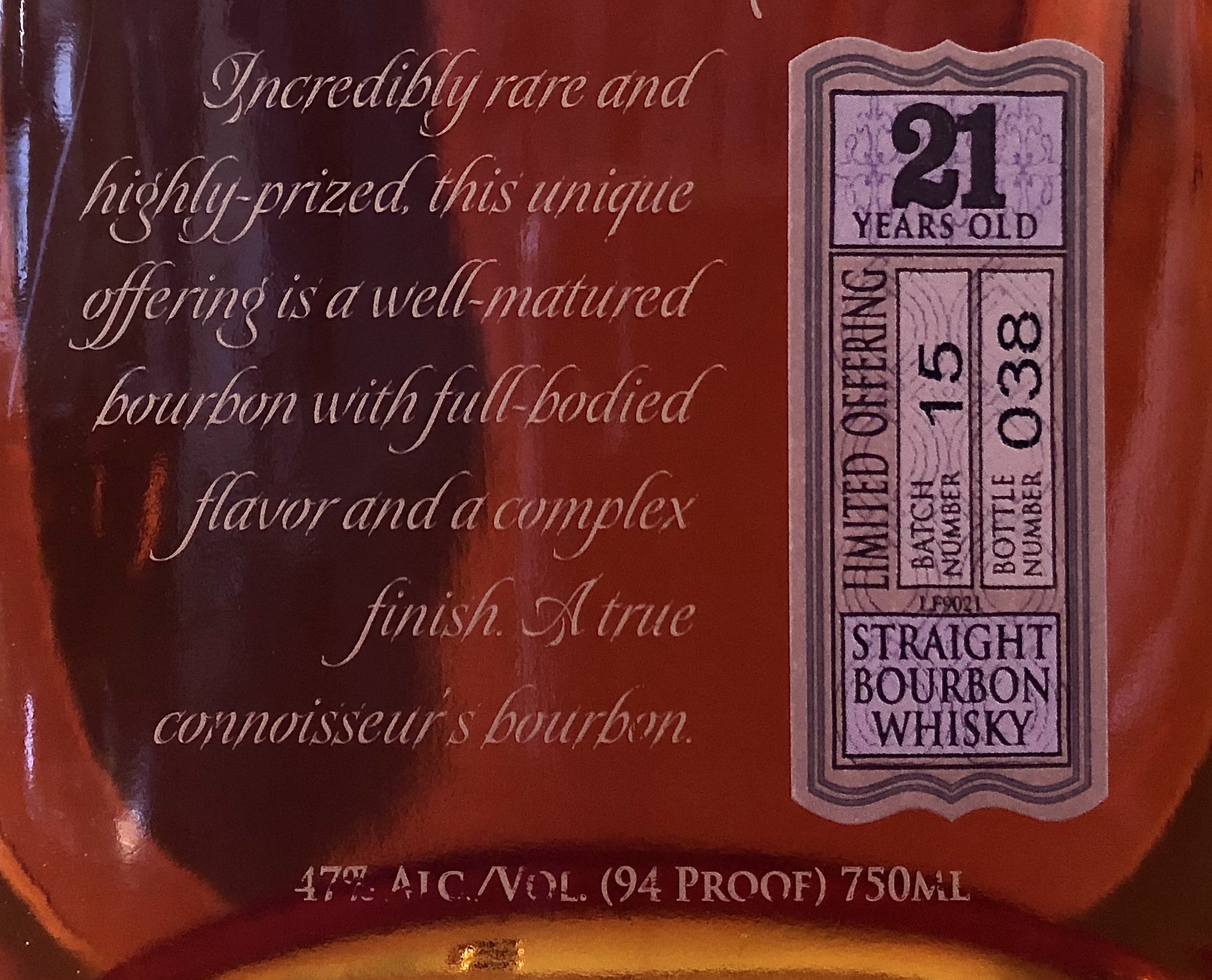 I do have a second bottle of that Jefferson’s 20 bunkered. When this 21 Year eventually reaches its end I may wish to compare them. To my sense-memory, this is quite different than the 20 Year. It’s the wild rye notes that stand out as the distinction. Jefferson’s does not reveal its sources anymore. We know neither the 20 nor 21 Year are among their fabled Stitzel-Weller offerings. They could be Heaven Hill, Barton, Buffalo Trace, MGP, Wild Turkey, Jim Beam, who knows…
