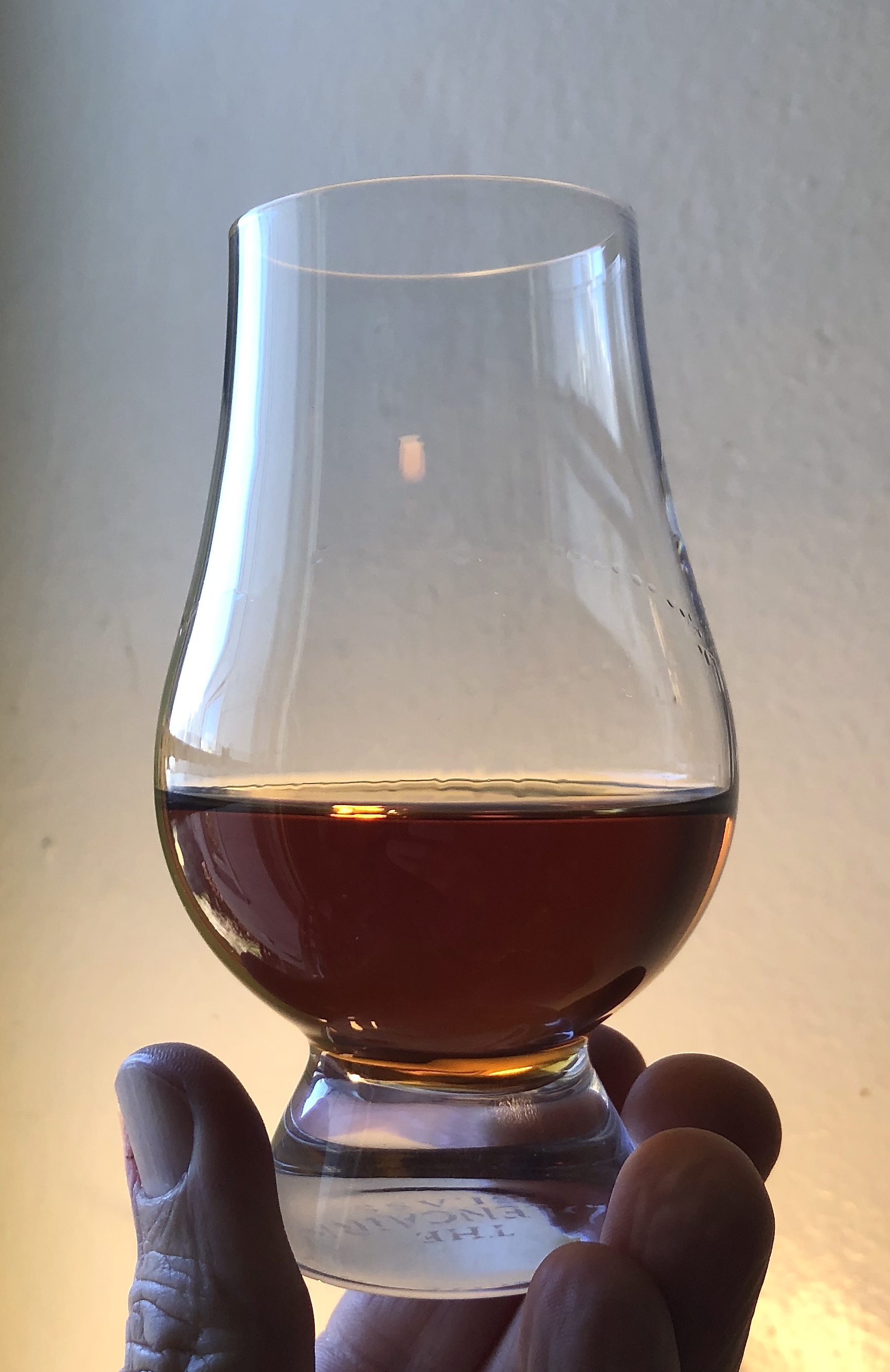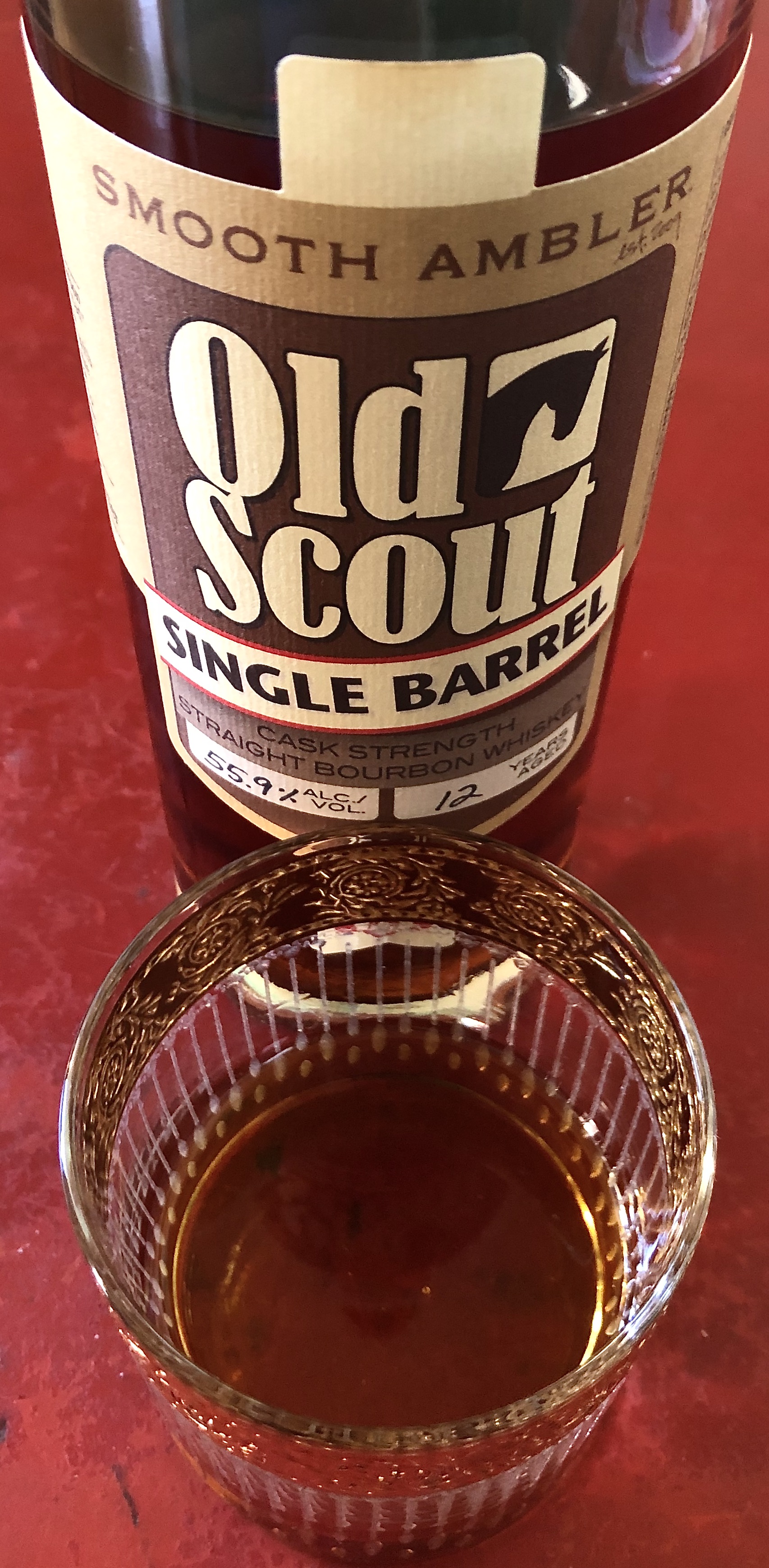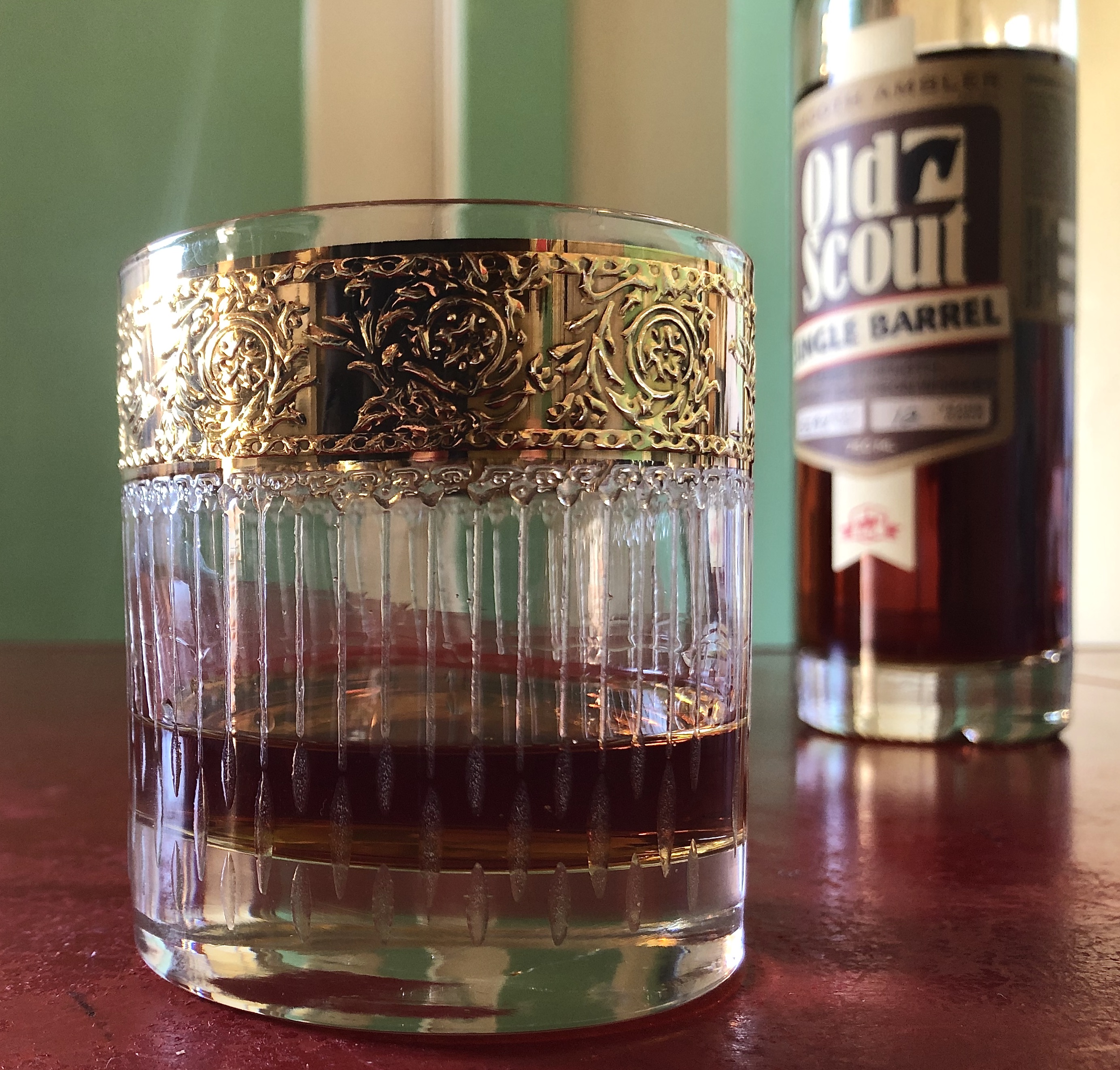 All this considered, I thought the Old Scout SiB deserved its own tasting. These notes were taken about a week and half after uncorking, and three pours into the bottle, tasted in both a traditional Glencairn and antique tumbler.