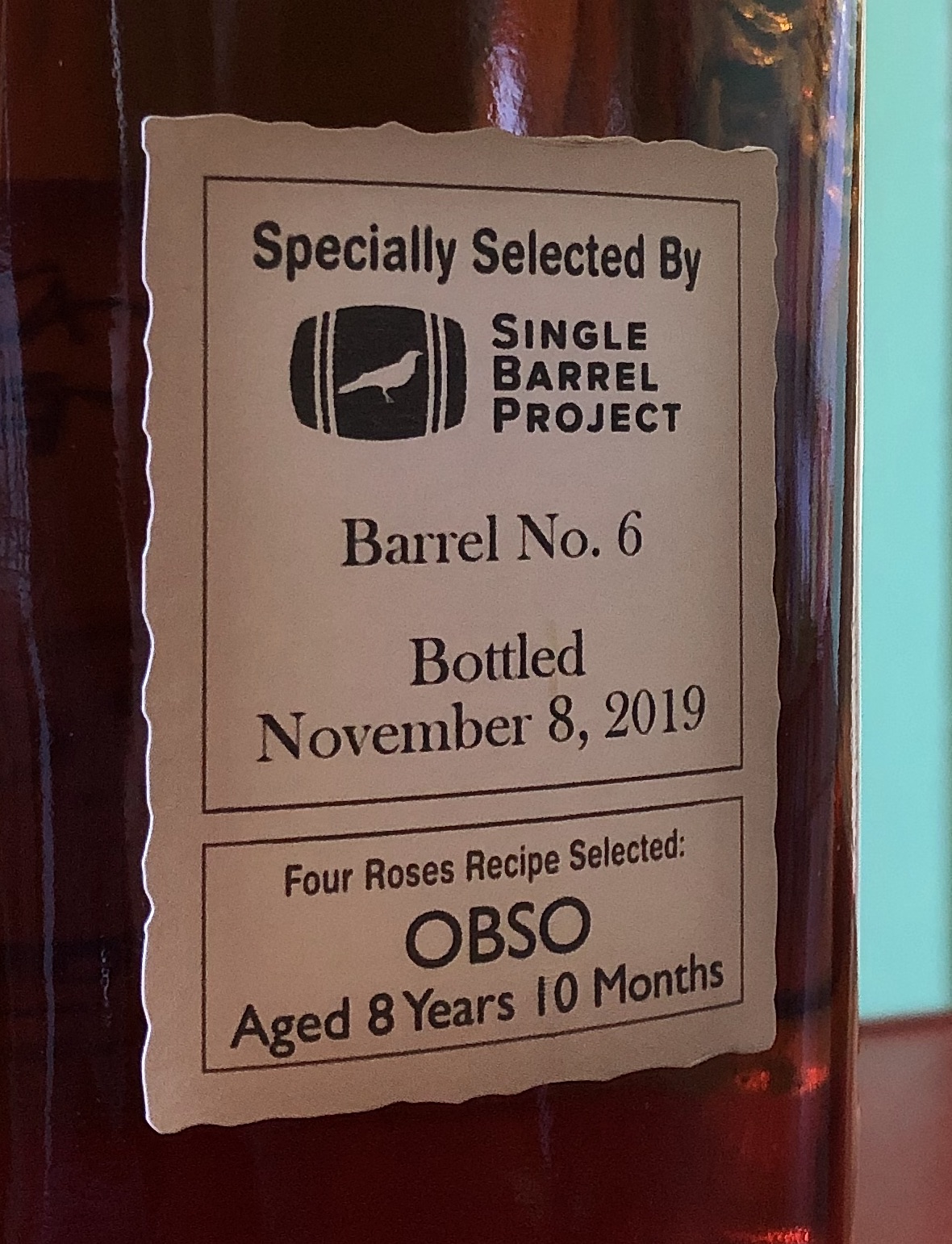 OBSO, 8 years 11 months, 109.6 proof, picked by Bitters & Bottles