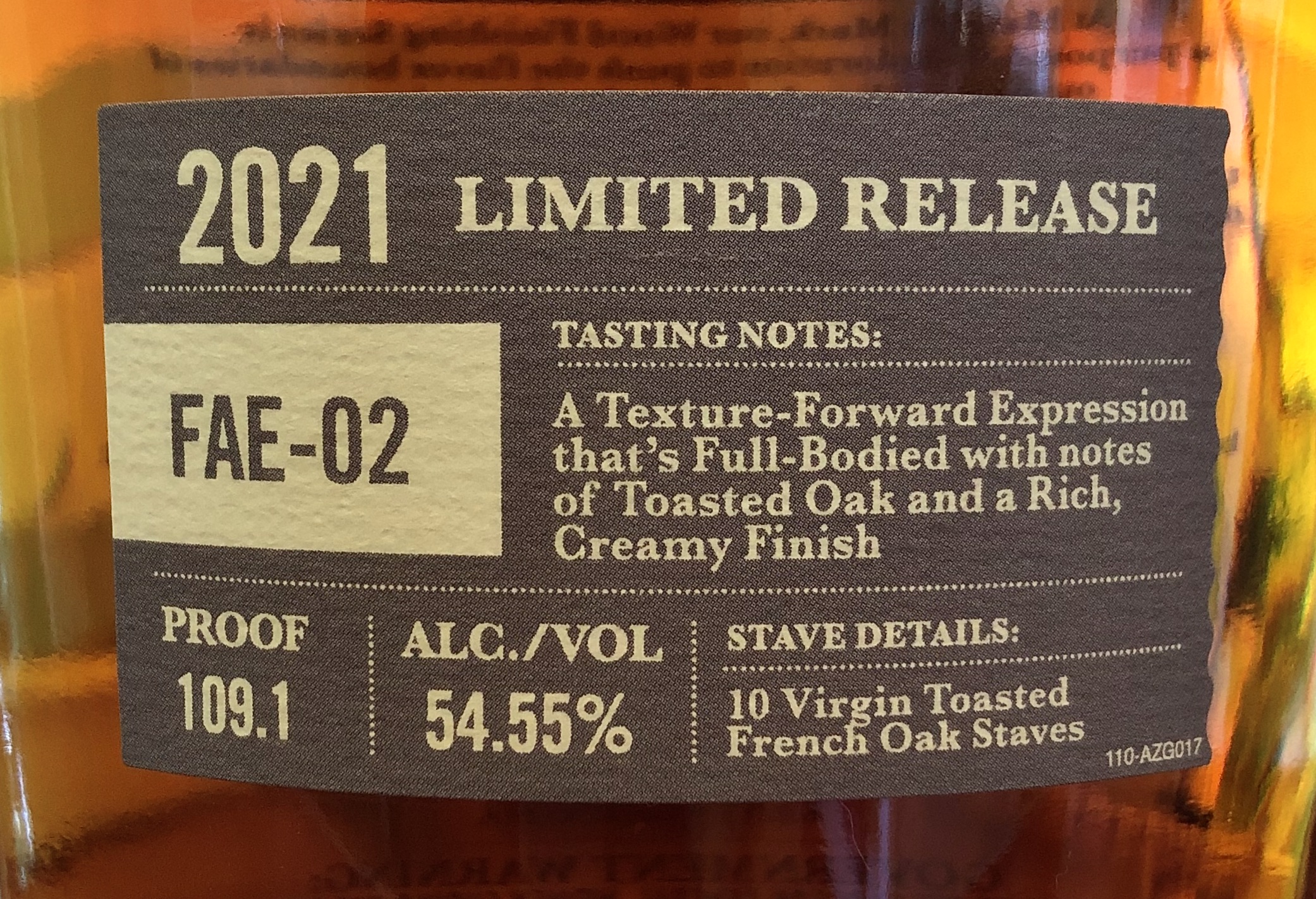 Batch FAE-02 (2021)MASH BILL – 70% corn, 16% wheat, 14% malted barley