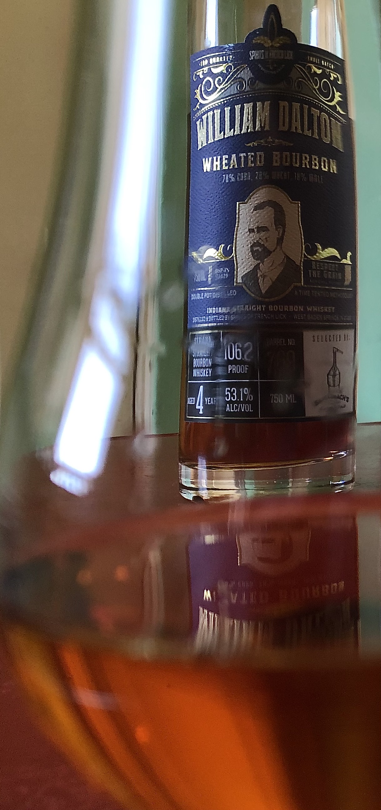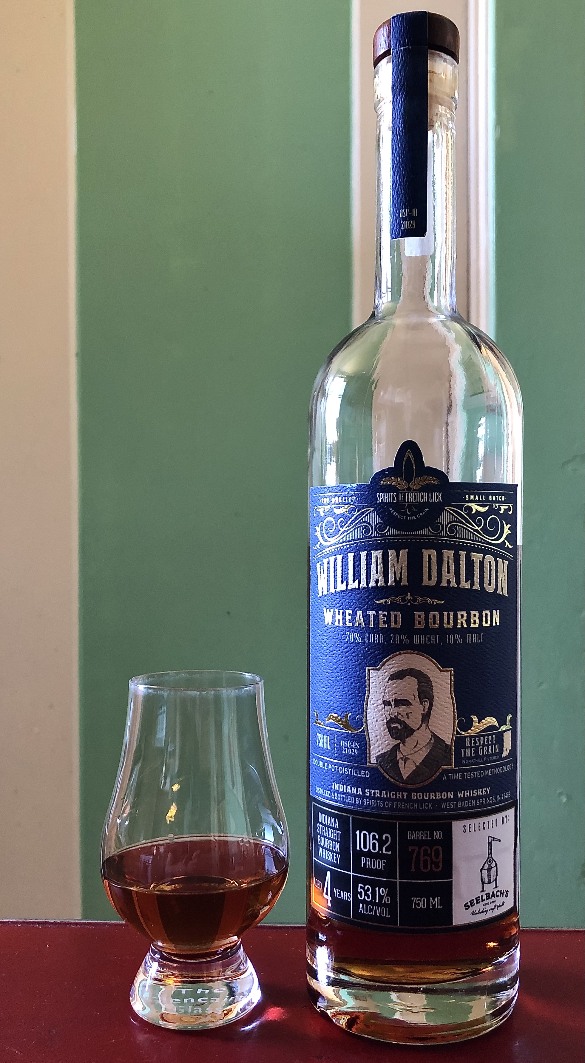 My introduction to Spirits of French Lick was their standard bottled-in-bond release of Lee W. Sinclair Four Grain Bourbon, and a Seelbach’s cask strength pick of their Mattie Gladden Bourbon. At uncorking I had mixed feelings about them. But after only a week of their airing out, I began to come around—especially to the Mattie Gladden, which I found particularly well balanced. That one continued to grow on me, and in fact when I picked up this William Dalton from Seelbach’s I also picked up their latest pick of the Mattie Gladden.