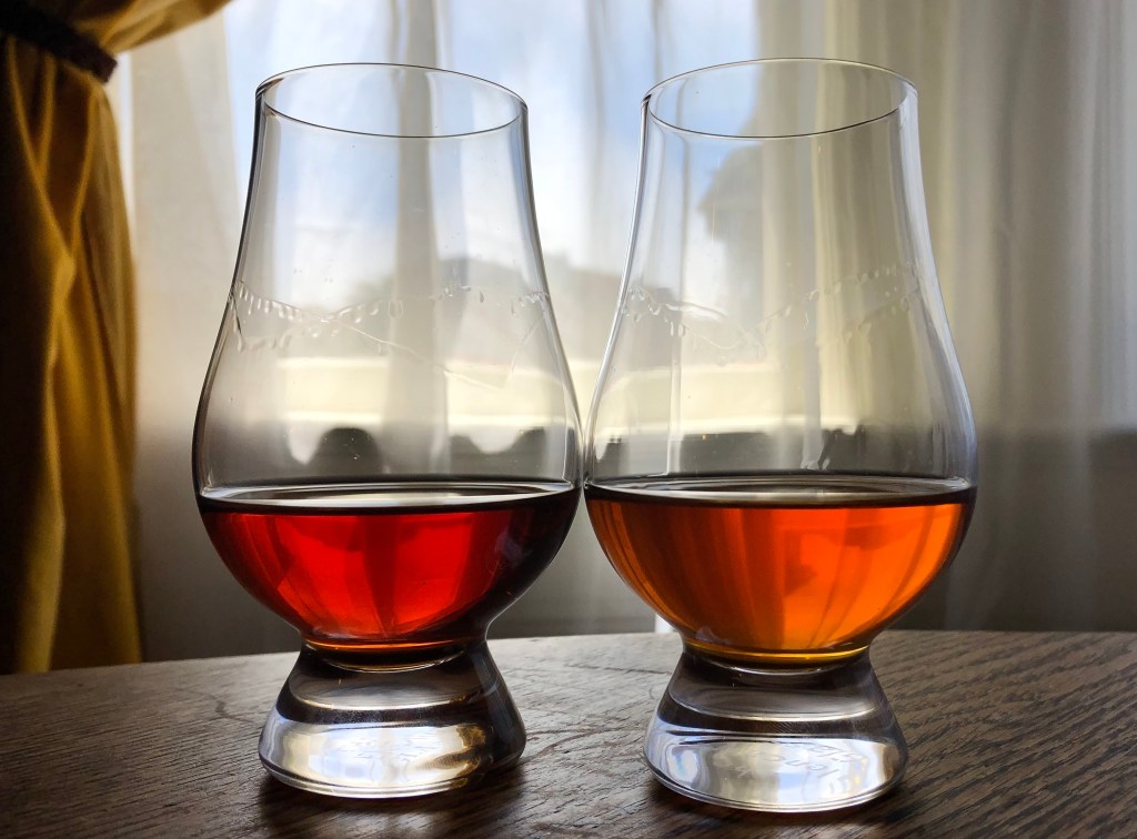 So here we are: a comparison I’ve been waiting for with great anticipation. The Fall 2021 bottle has been open for a full seven months and I’m into its final third. The Summer 2022 bottle has been open for a week and a half, and I’m five pours in. These brief notes were taken using traditional Glencairns.