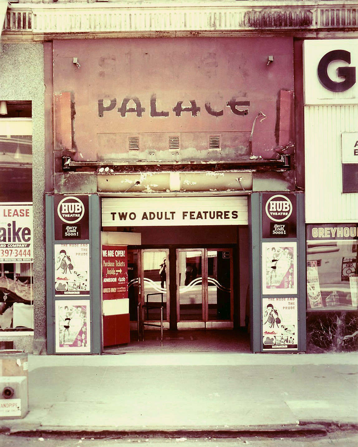 Following its vaudeville era, the Silver Palace became the first moving picture theater in San Francisco. In 1951 it was renamed The Hub, and after a period showing legit films it became a porn house. In 1970 The Hub marquee was pulled down, revealing the original Silver Palace signage beneath. By 1972 it was closed. Eventually a CVS moved in. Now post pandemic, it’s empty.