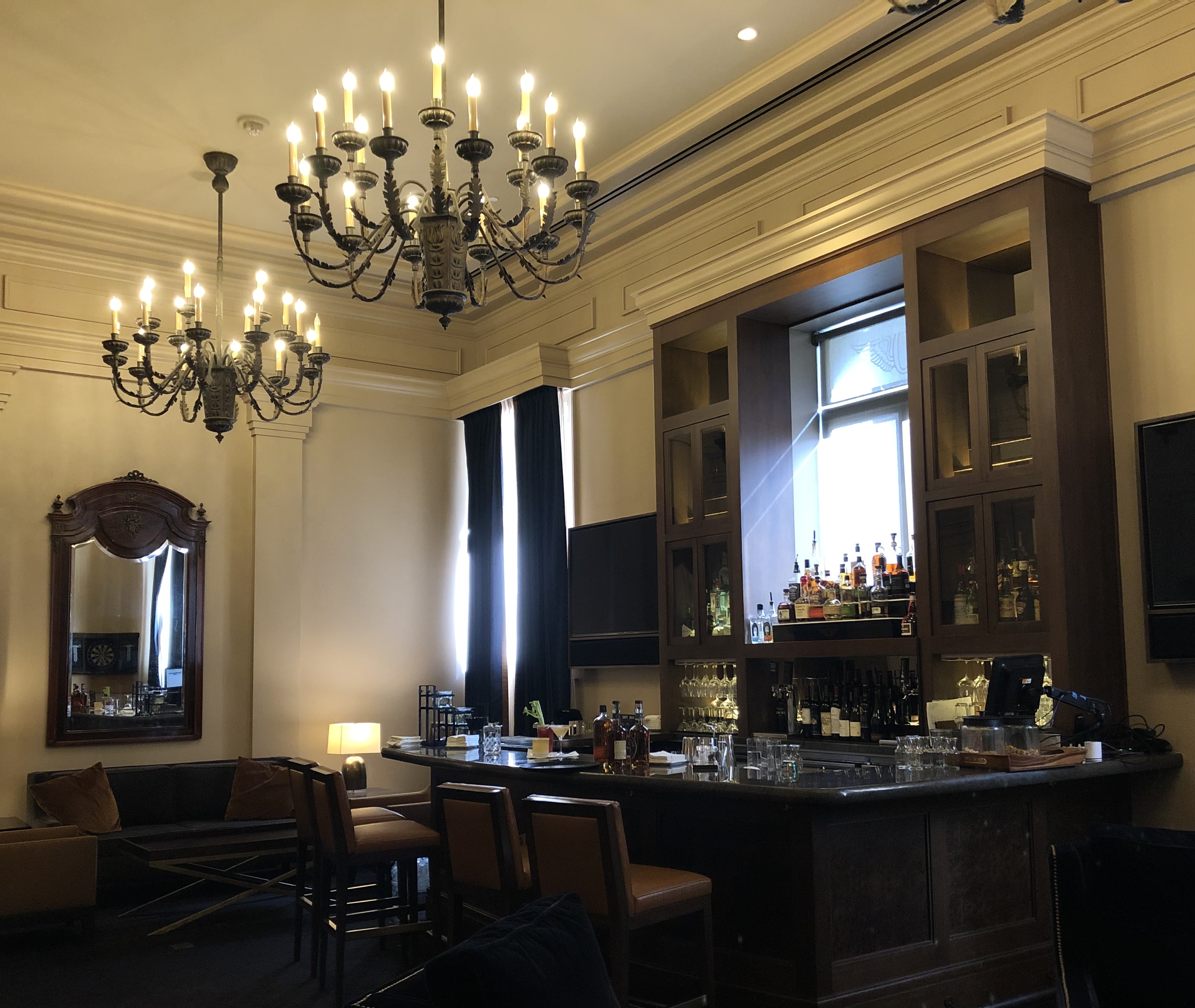 Being a private club, I could not stroll its halls freely as I had done the Palace, Fairmont, and St. Frances. But after some friendly chat with the receptionist, I asked if I could linger on a lobby display outlining the club’s history. I took my time reading the display, to normalize my unauthorized presence. With others now vying for the receptionist’s attention, I slipped off through a side hall. Almost immediately I found myself in a special room, a cozy private bar I’ll call The 1860, for the year printed on its bar’s front side:
