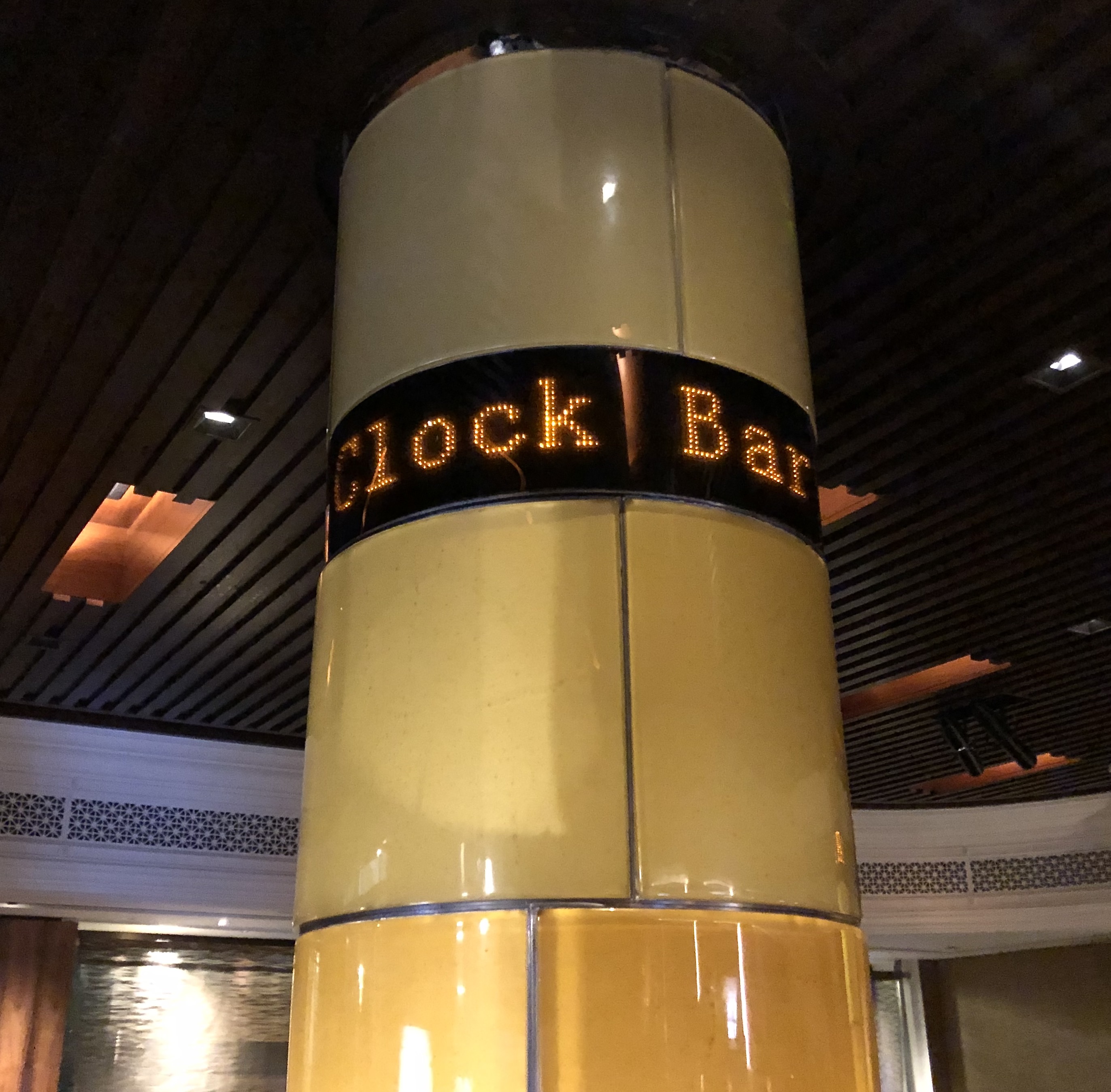No doubt the current bar has nothing to do with the Far Western Travelers Club where Boothby once blended drinks. The new Clock Bar has been fitted into what once was the lobby jewelry shop. If one looks closely, trim from the past can be found rimming the ceiling’s edges. But everything else is rather generically modern with a slight early 1960s flare.