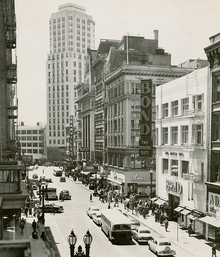 Today, the four corners of Stockton and Geary are marked by Bulgari, Neiman Marcus, Macy’s, and Union Square. Of those, only Union Square existed when the Parker House was opened: