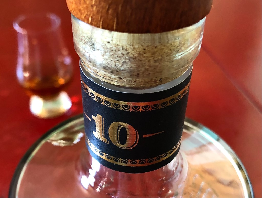 But first, to taste the Trail’s End again on its own. Here we are now, one week after uncorking and five pours into the bottle. These brief notes were taken using a traditional Glencairn.