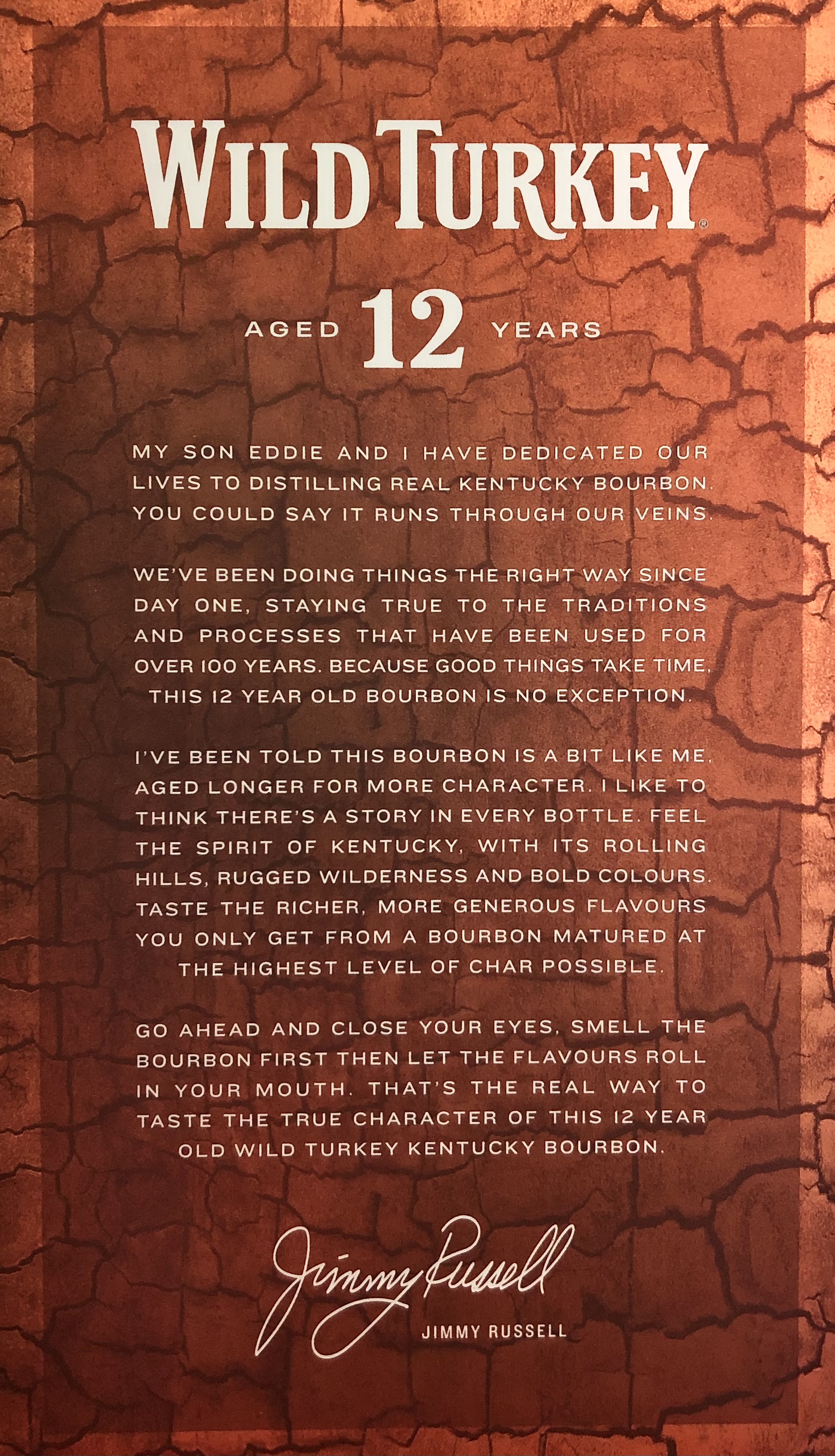 A lot has been written about Wild Turkey products, and will no doubt continue to be. It’s a legit classic brand, both by image and, most importantly, by consistency of taste. Wild Turkey compels ongoing respect, appreciation, and contemplation.