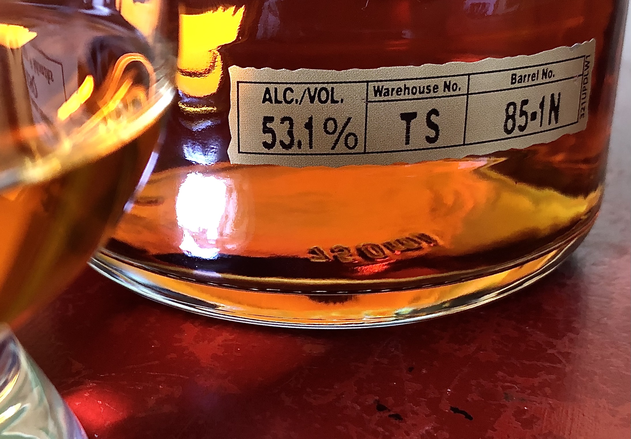 Even before I started my formal comparisons, I’d already been convinced that the F and Q yeast-strain recipes just weren’t for me. But when I saw this 2023 OESQ offering on the shelf, I thought, well, tastes do change over time. Maybe I should give the Q yeast another go. This particular bottling featured the sweeter E mash bill, which I prefer to the spicier B. Also, it hailed from its warehouse’s Tier 1, the lowest level, resulting in a cozy 106.2 proof after 10 years and 9 months of aging. All this sounded great, save the questionable Q. So I went for it.