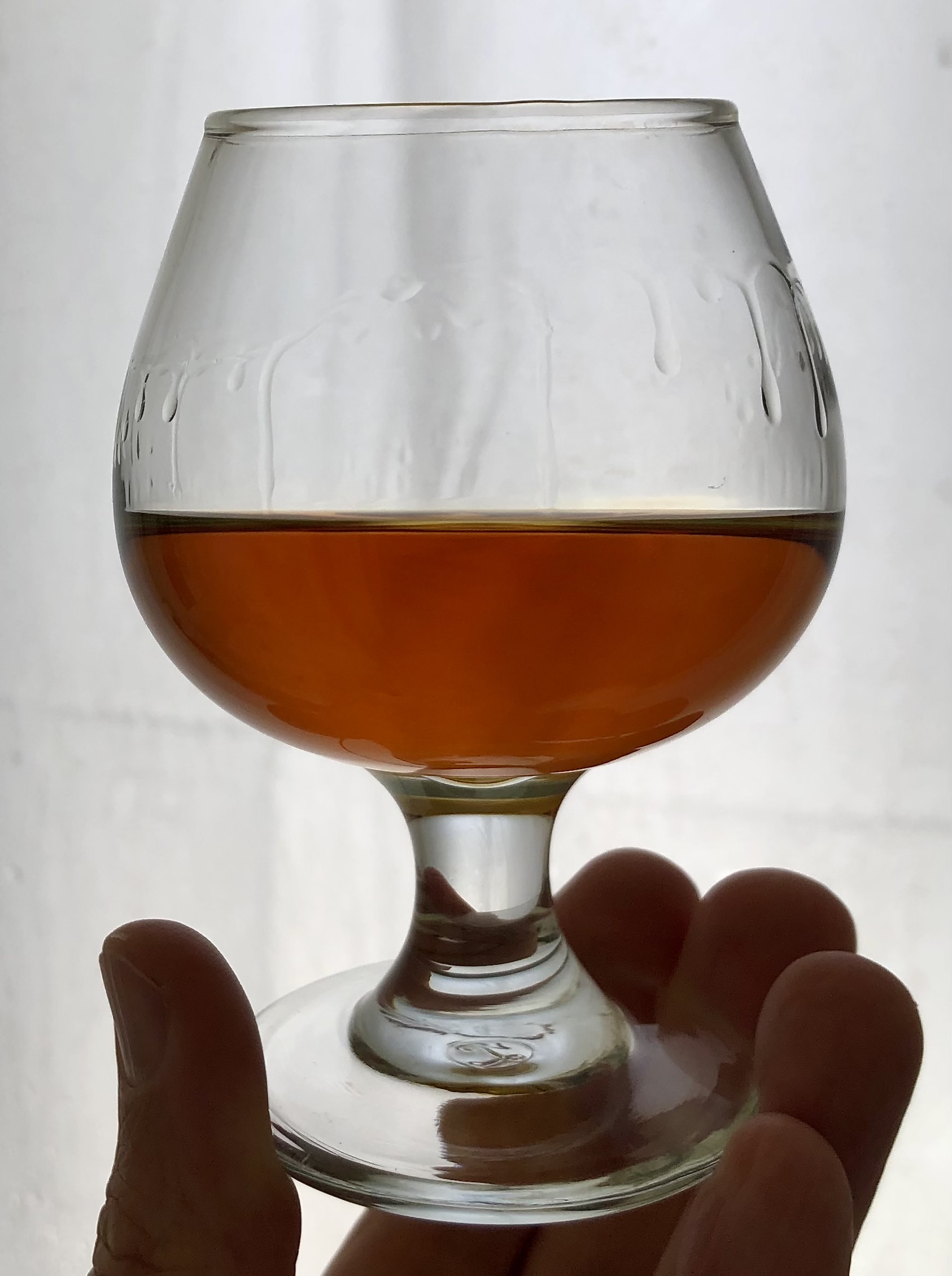 COLOR – lovely pale orange-ambers, and surprisingly syrupy when dripping down the glass considering the proof