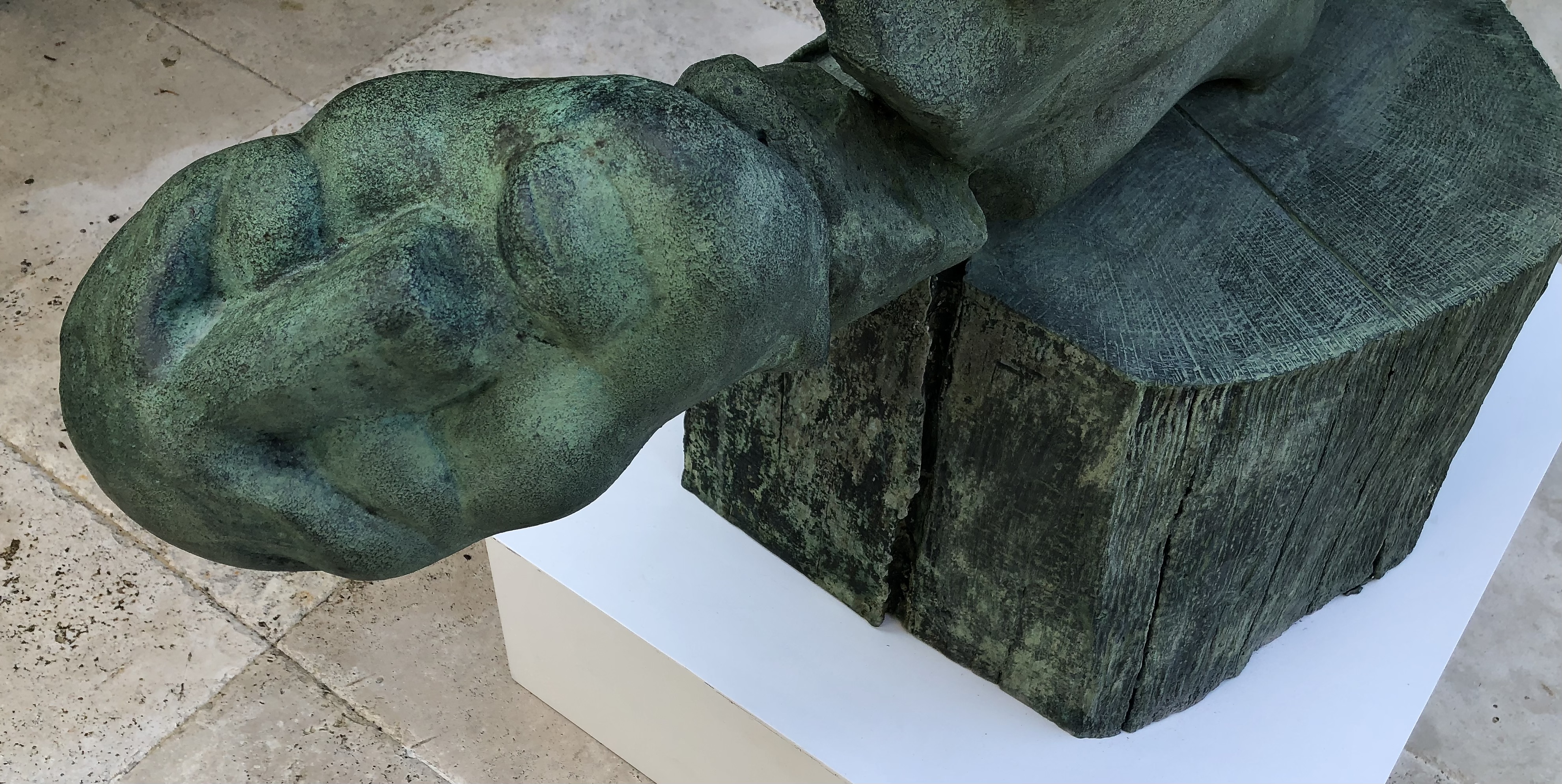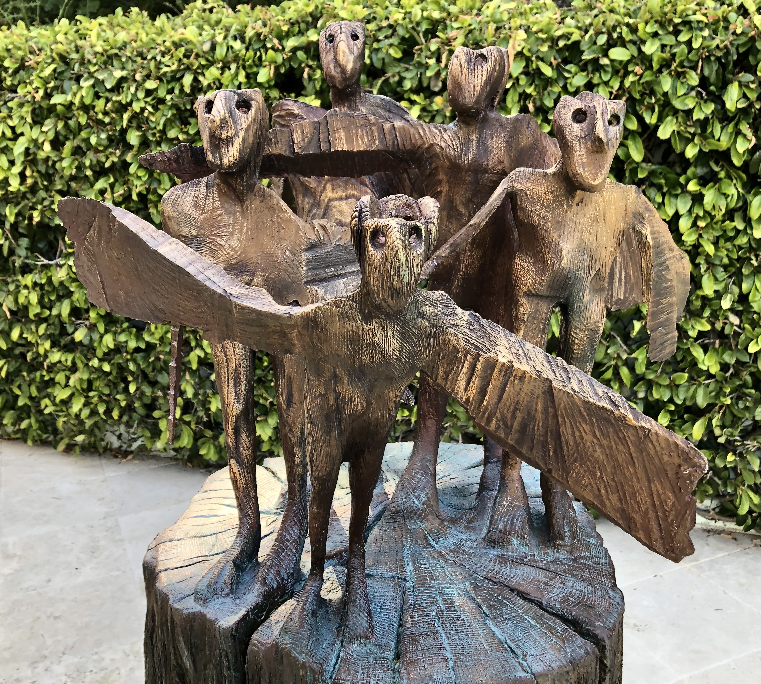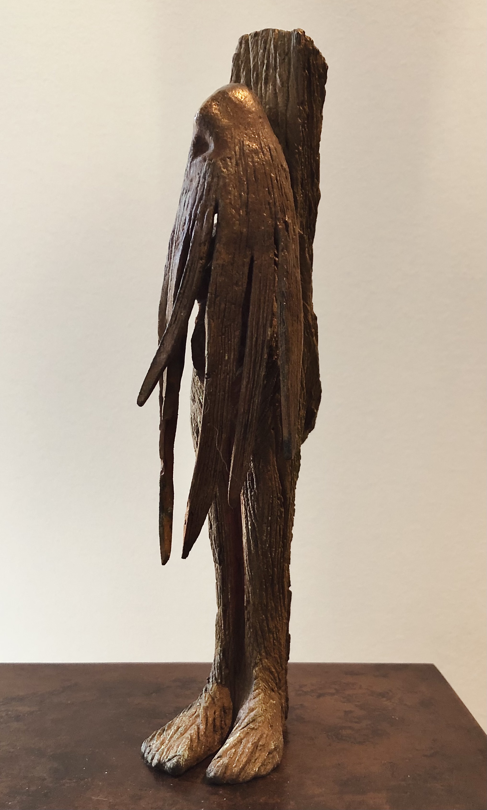 Like this example, Alexander’s series of angel sculptures do not spring only from the theme of angels. Alexander is a voracious devourer of all art forms. His statues and paintings inevitably refer to other artists who have inspired him in their own genres, and with whom he finds ongoing resonance in contemporary life—the East German playwright Heiner Müller, whom Alexander knew as a child; Dante, of The Inferno fame; György Kurtág, the Hungarian composer still making music at age 97 as I write this; Paul Celan (1920-70), the Romanian-born Jewish poet; Johann Sebastian Bach, the German Baroque era composer…