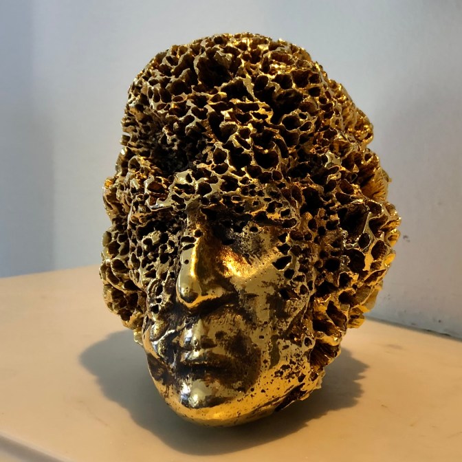 Same goes for Alexander’s art. If someone recognizes something of Bach’s face in the piece inspired by the composer, and if they know his music, they might reflect on Bach’s prodigious outpouring of fluid, twirling baroque compositions. If they don’t know what Bach looked like or consciously recognize his music, they might see in the piece a person bursting with ideas, and reflect on explosive creativity. Great.