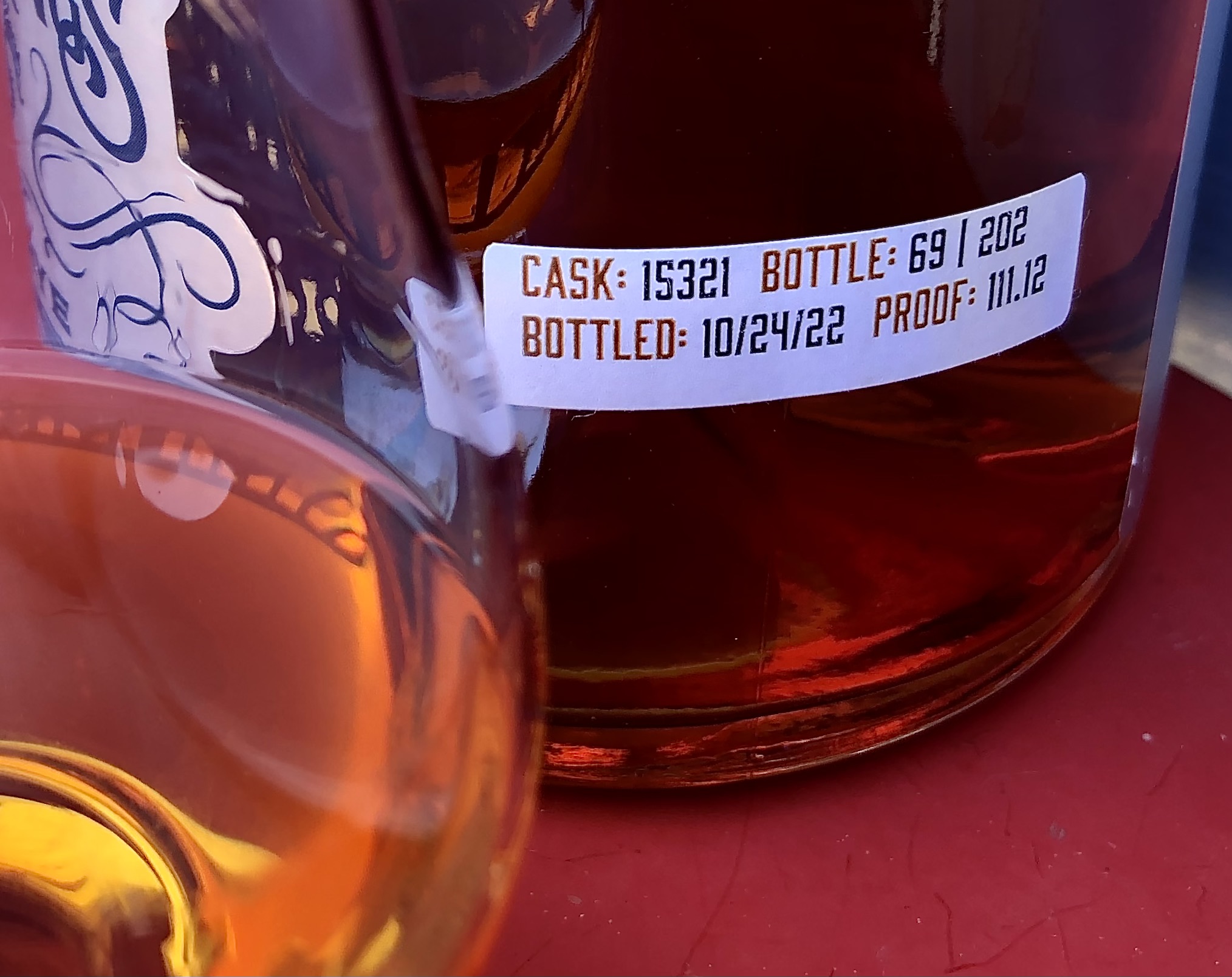 Single cask #15321 bottled October 24, 2022MASH BILL – 65% rye, 15% corn, 20% malted barley