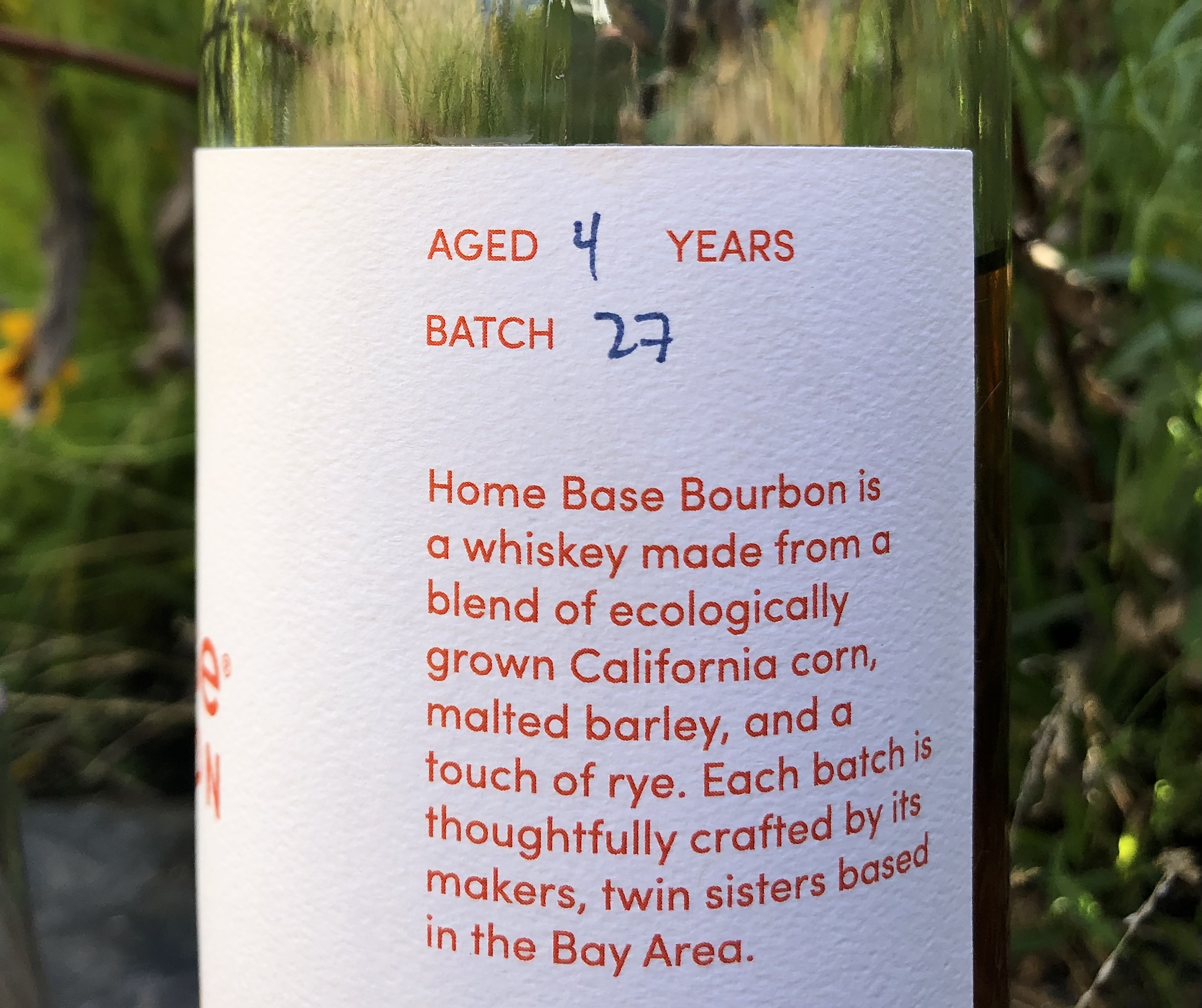 When I uncorked this bottle, it drove me straight outside into my garden. The weathered wood of our old fence. The wildflowers and random northern California grasses. It all matched the bourbon’s own color pallet, and the label art as well. I enjoy it at my kitchen table, of course. But the aromas and flavors of this bourbon seem most at home outside.