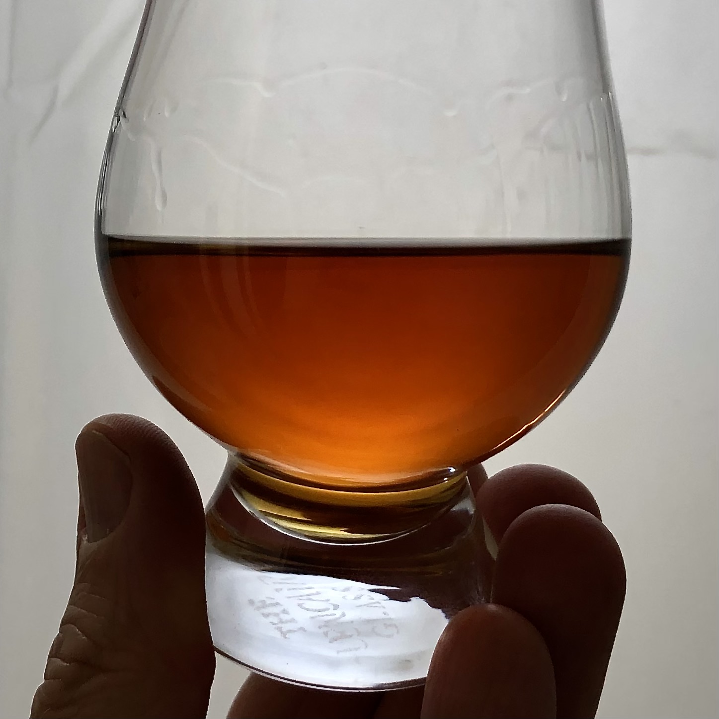 So let’s get into a glass. Here we are, six weeks after uncorking and four pours into the bottle. These brief notes were taken using a traditional Glencairn.