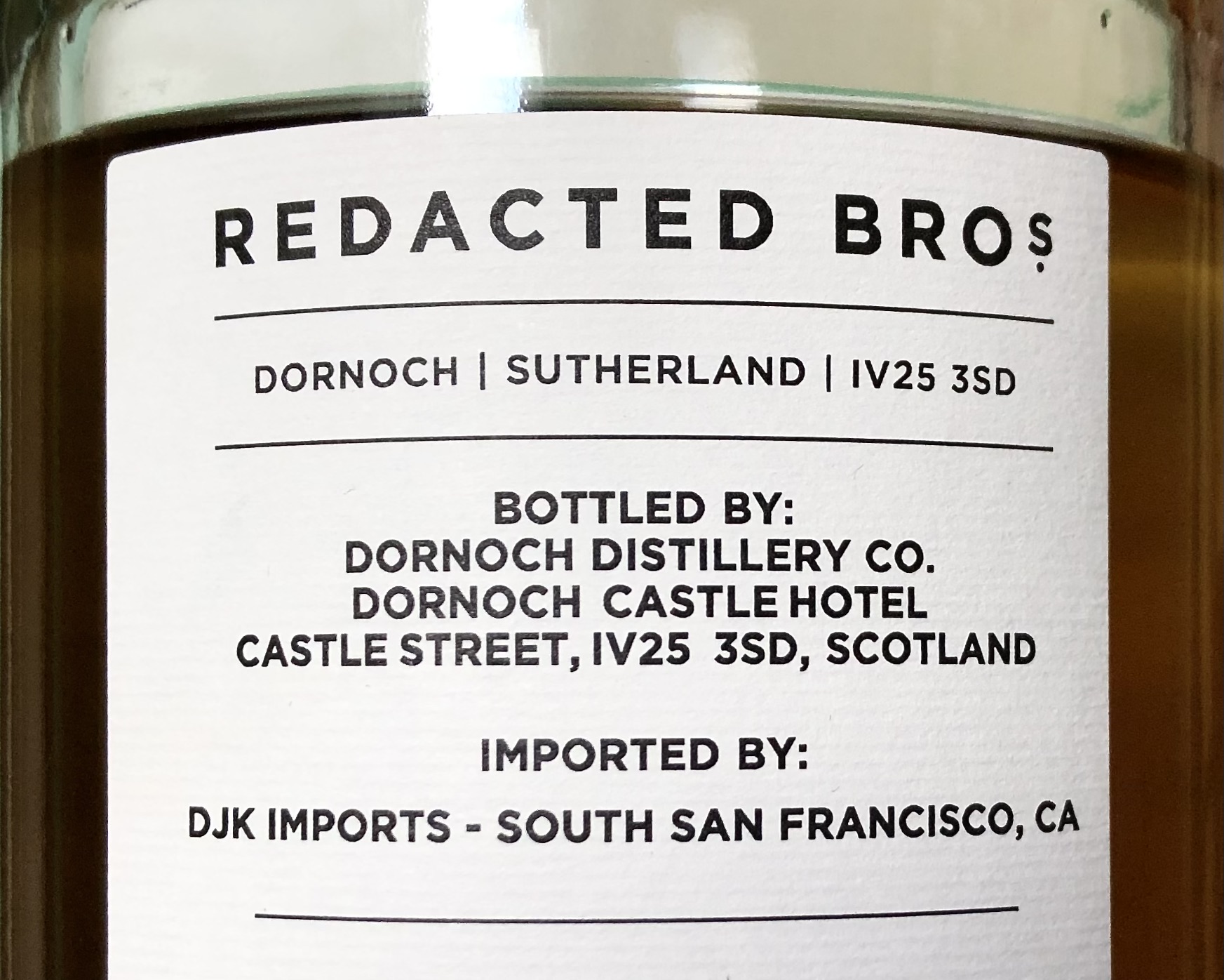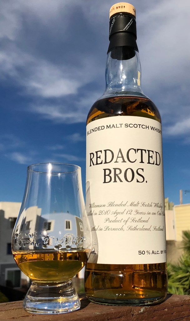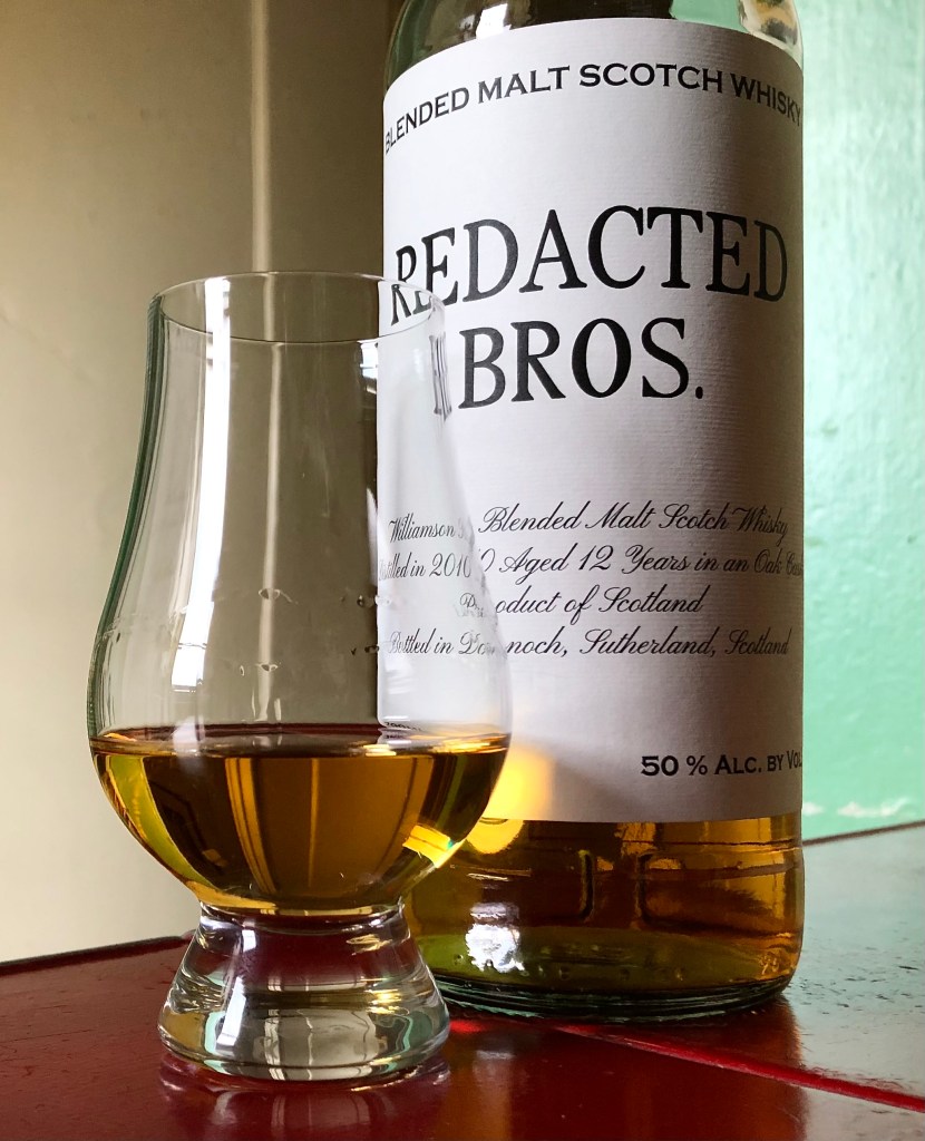 So when I saw this latest sherry-aged Redacted Bros Williamson Blended Malt Scotch go on sale at K&L, I jumped on it. The good people at Thompson/Dornoch, who produce under this “Redacted Bros” label, are contractually obliged to withhold the source of this whisky. But hardcore Laphroaig fans will recognize the packaging’s unsubtle nod to an old style Laphroaig label design, with its block letters, cursive small print, and black-and-white simplicity.