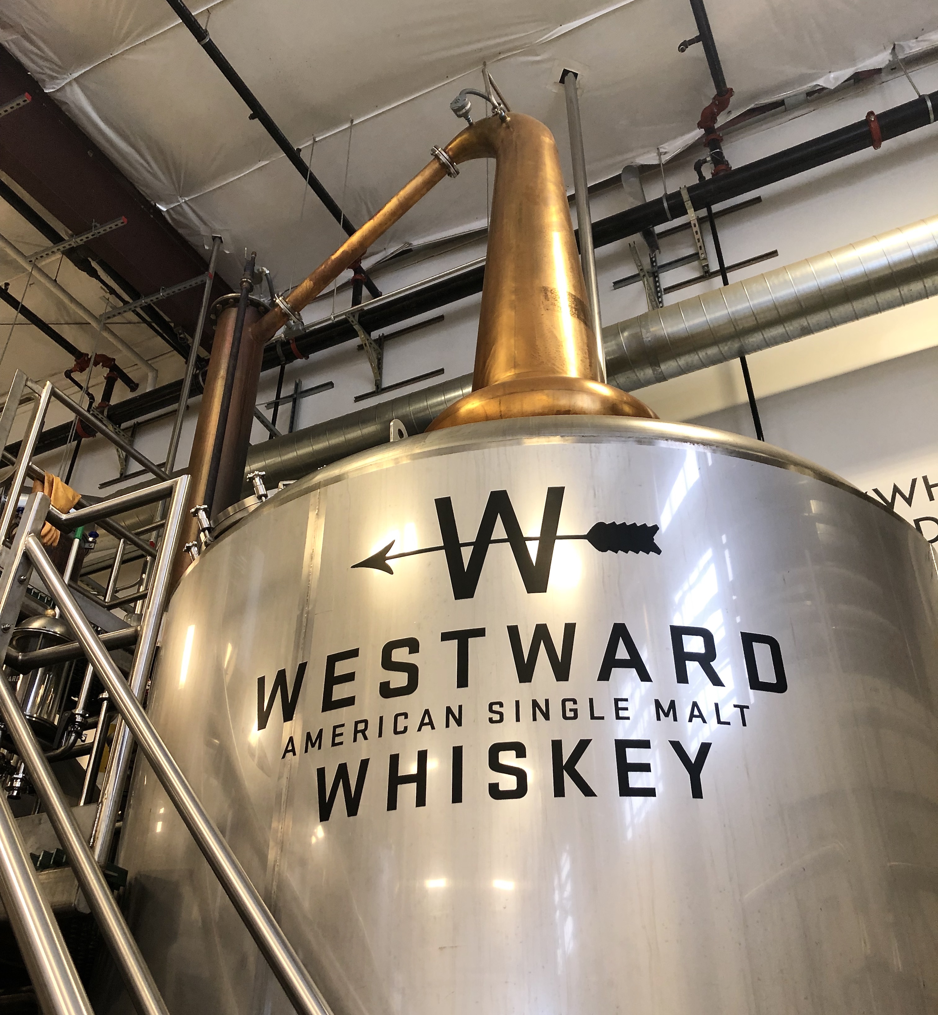 This was a key moment. Now with the pure taste of raw barley infused into my senses, we made stops to sip at every stage of the process—the fermenting vat, the first distillation, second distillation, and finally a flight of eight different Westward Whiskey variations. Throughout, I could track the evolution of the barley flavors as they made their way through the process from grain to glass.