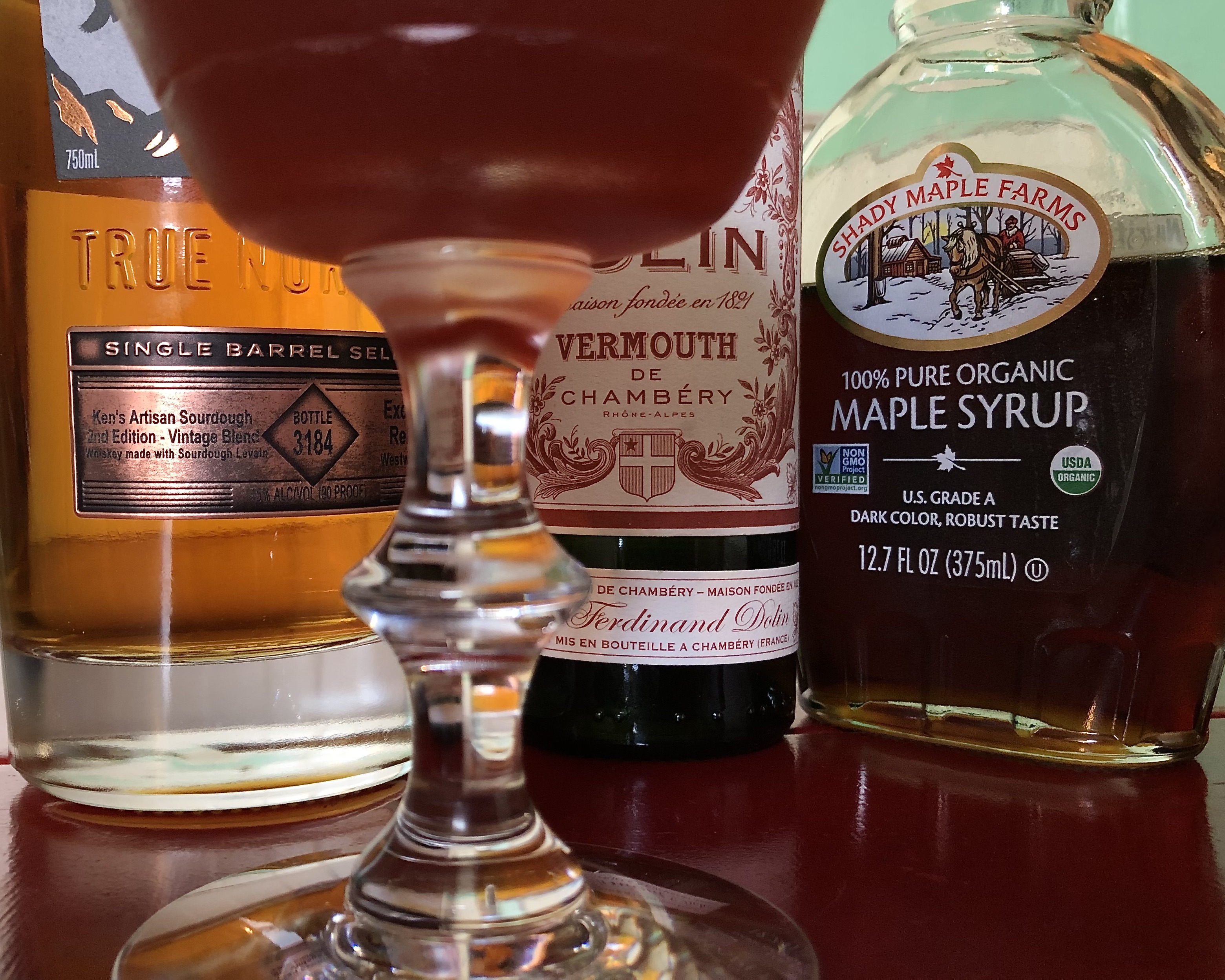 Excellent! All the ingredients work together in perfect balance, each discernible without any one taking over. The savory, mildly bitter sourdough plays well off the maple syrup. The blood orange juice and vermouth share a rich roundness, working together like an undercurrent for the bready notes of the whiskey and rustic aspect of the maple to float on. Altogether delicious.