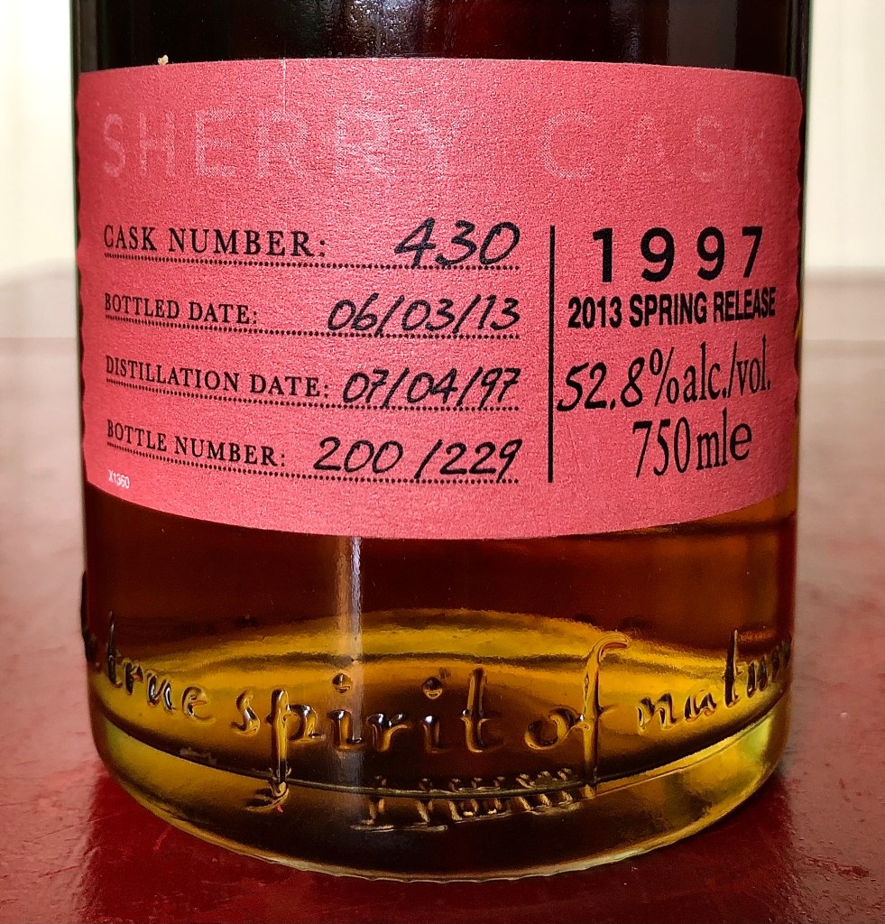 Sherry Cask #430, distilled April 1997, bottled March 2013MASH BILL – 100% malted barley