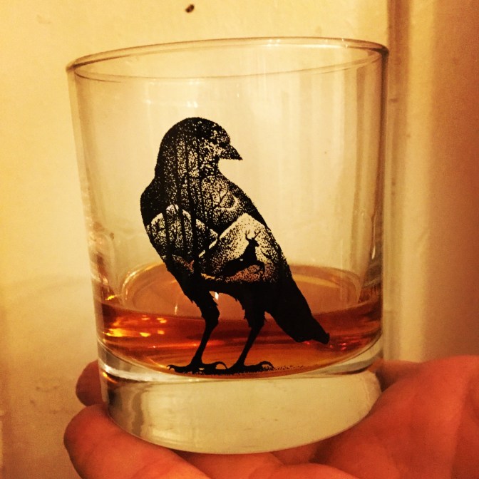 The tumbler I chose as an icon for The Right Spirit, with its image of a crow with a deer in its stomach, was a gift to me from the cast of The Black Rider, a Tom Waits musical I directed in 2017. They knew I was a whiskey fan. And the show was filled with images of crows and deer and dark spooky forests. The photo is one I snapped quickly with my iPhone late one night, to share with the cast my having put their gift to good use.