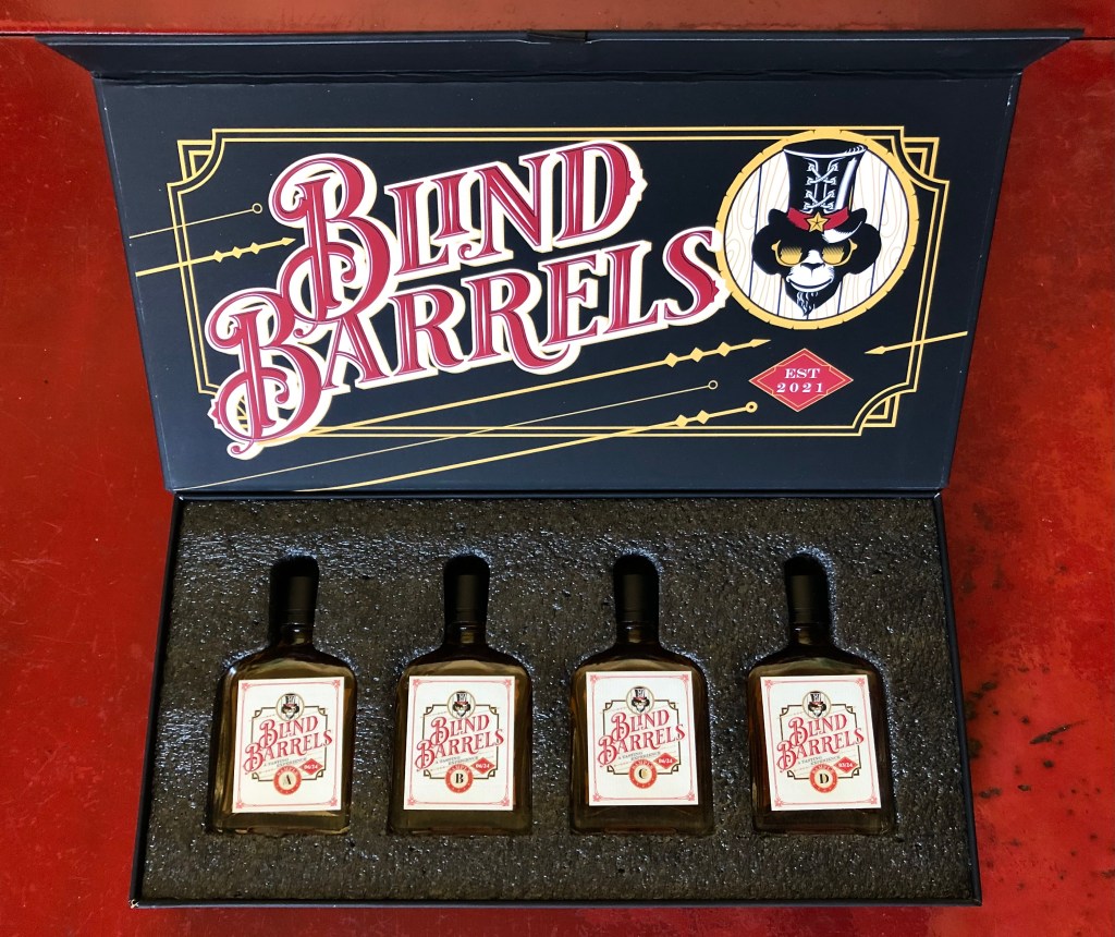 The kind people at Blind Barrels sent me this sample kit. The concept is very fun: a blind tasting subscription by which craft whiskey fans are sent four samples quarterly (you can also order one-off kits) without knowing what they’re getting. You taste through them, make your guesses, then use a QR code to find out what you’ve had. And if you like any in particular, you can order a full bottle at a discount.