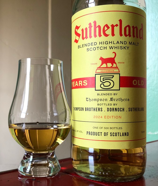 For example, you’ll notice Sutherland’s distinctly old-fashioned label, prominently featuring a cat in mid-stride. If that cat reminds you of the Clynelish / Brora cat, it’s no accident.