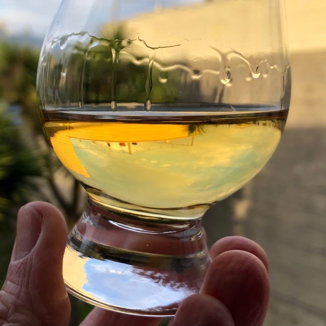 NOSE – a medley of fresh tropical and orchard fruits right up front, then salt, beach sand and air, a tart vanilla-caramel, faint red fruit notes as from a sherry cask