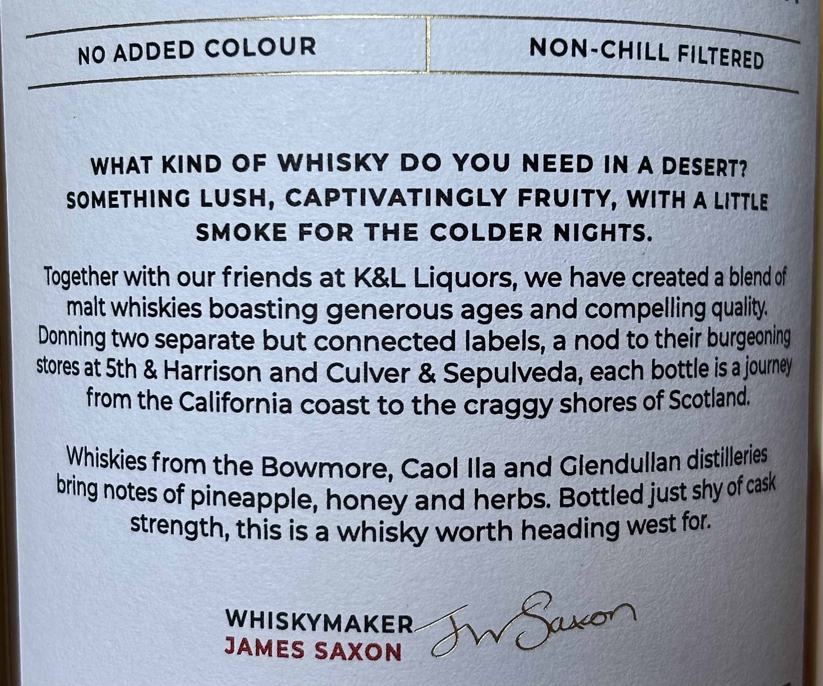 When California’s K&L announced the pre-sale for this collaboration with Compass Box—a rare opportunity they hadn’t had for a decade—I didn’t blink before buying a bottle. Look at these specs:
