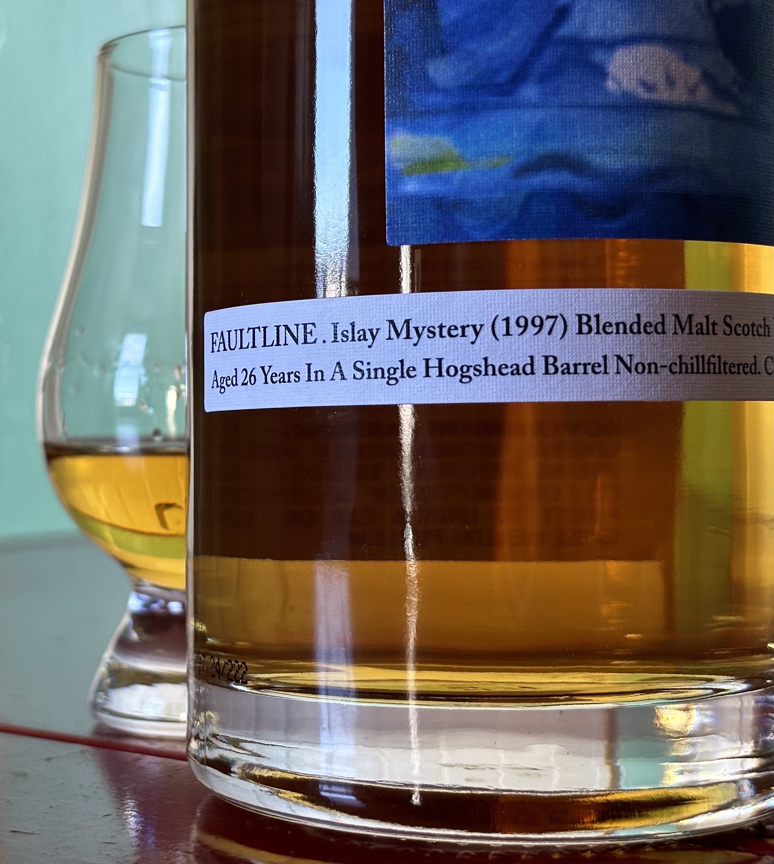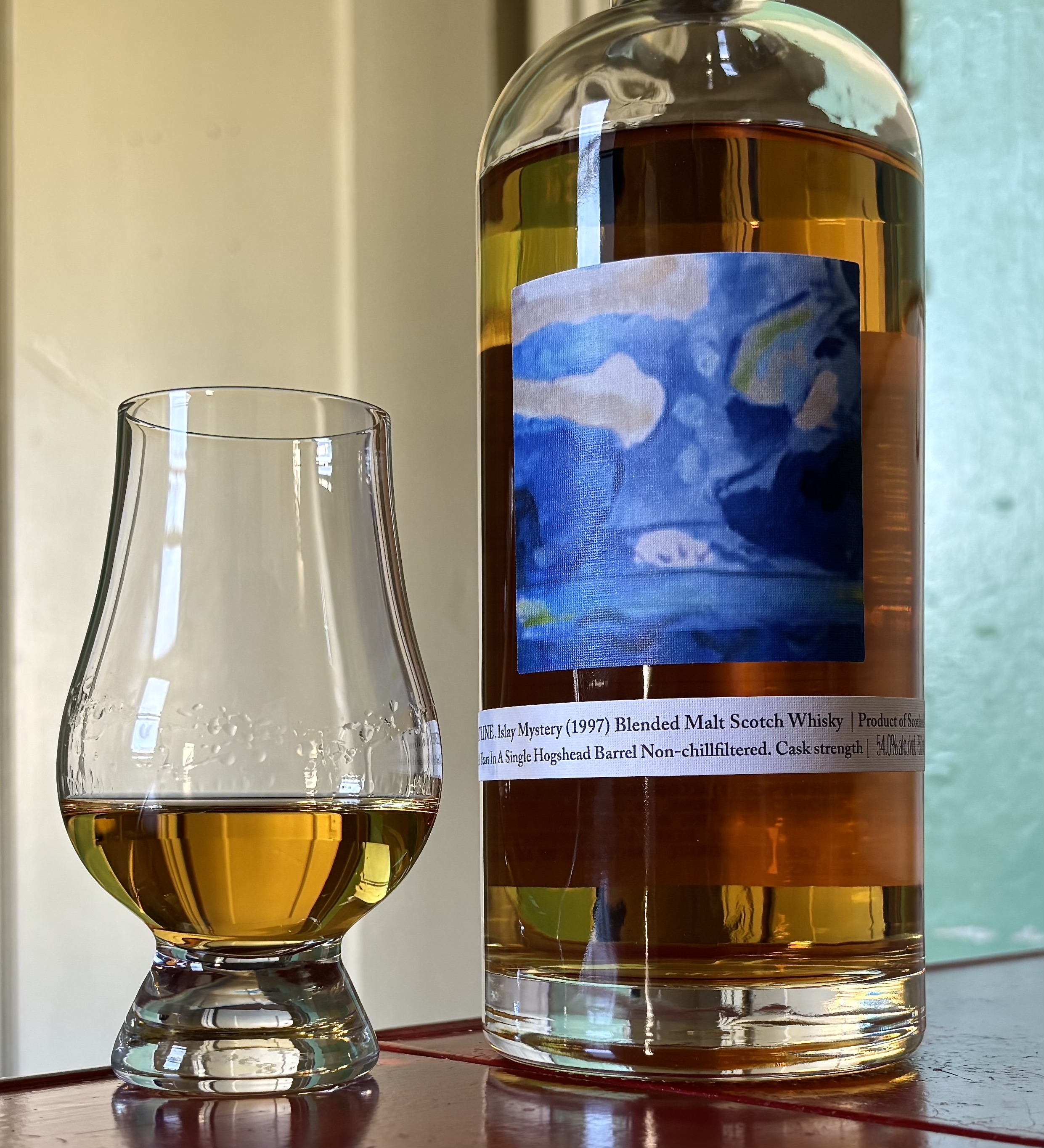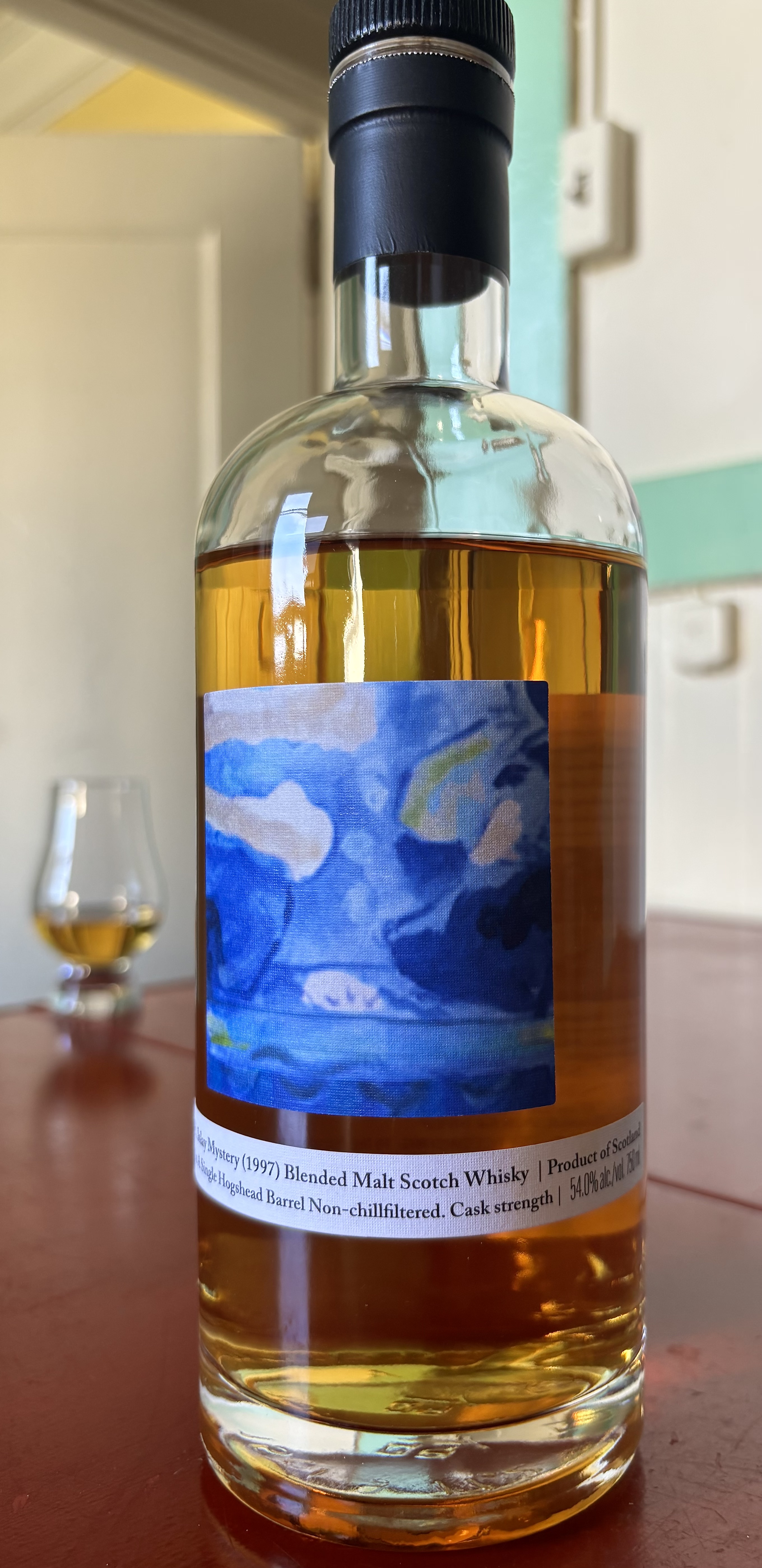 “Islay Mystery” is a wink that allows K&L to give the bottle a name without violating their non-disclosure agreement. But they’re up front about the source on their website. The “teaspooned” aspect is what legally makes this bottle a blended malt verses a single malt. It’s literally one wee teaspoon of something else dropped into the cask, never to be tasted. But hey, it brings the price down, so, fine by me.