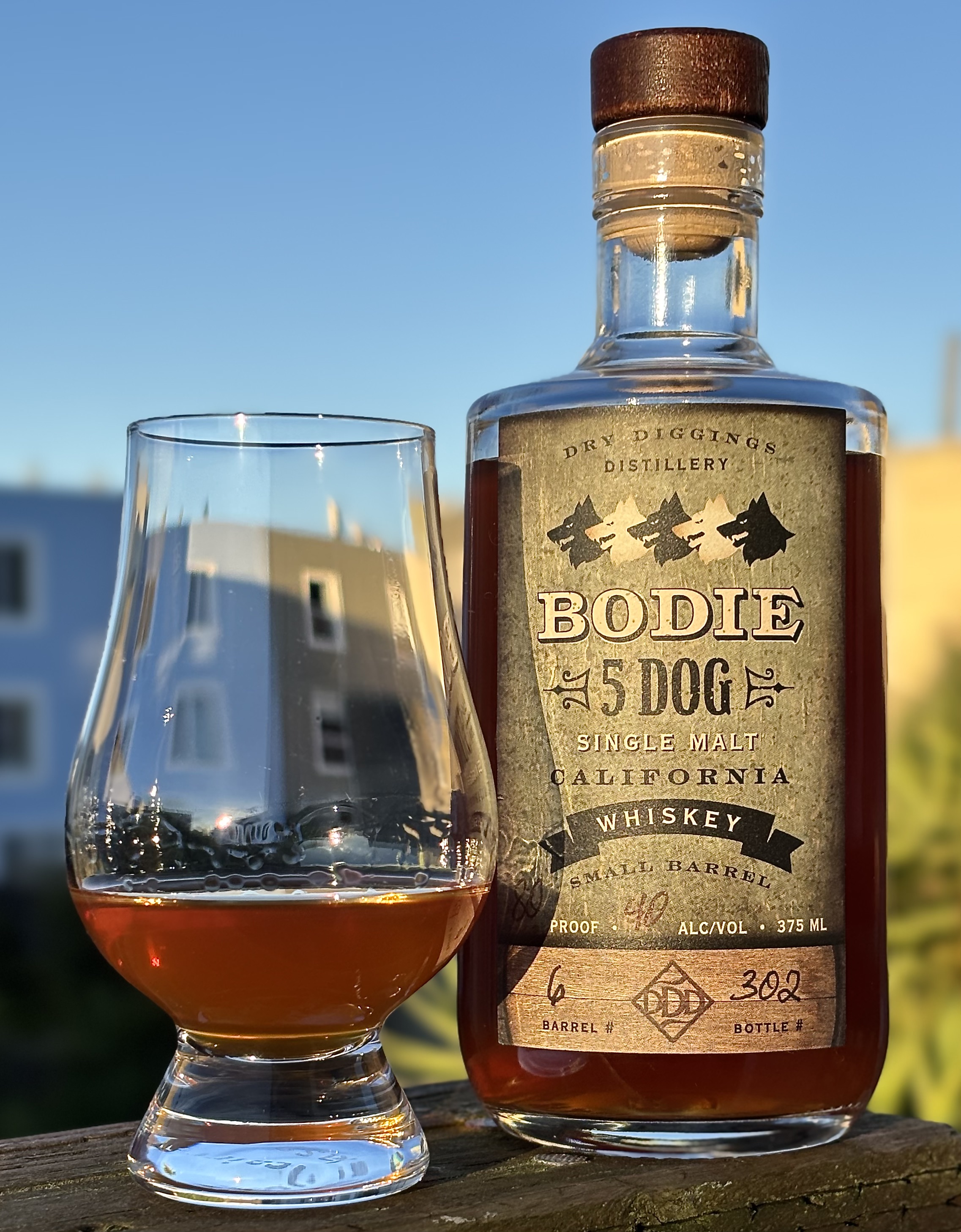 It’s been over five years since I’ve had Bodie 5 Dog. That was Batch 3 from 2019, my second bottle of that batch. Bodie 5 Dog is a single malt whiskey distilled and bottled by Dry Diggings Distillery in El Dorado Hills, California. They’re located close enough down Highway 50 from my hometown of Placerville for me to consider their products my hometown hooch. Their Rubicon Rye is a perennial fave among ryes for me. And their elusive 31n50 is the unicorn of unicorns in my personal whiskey unicorn fairytale book.