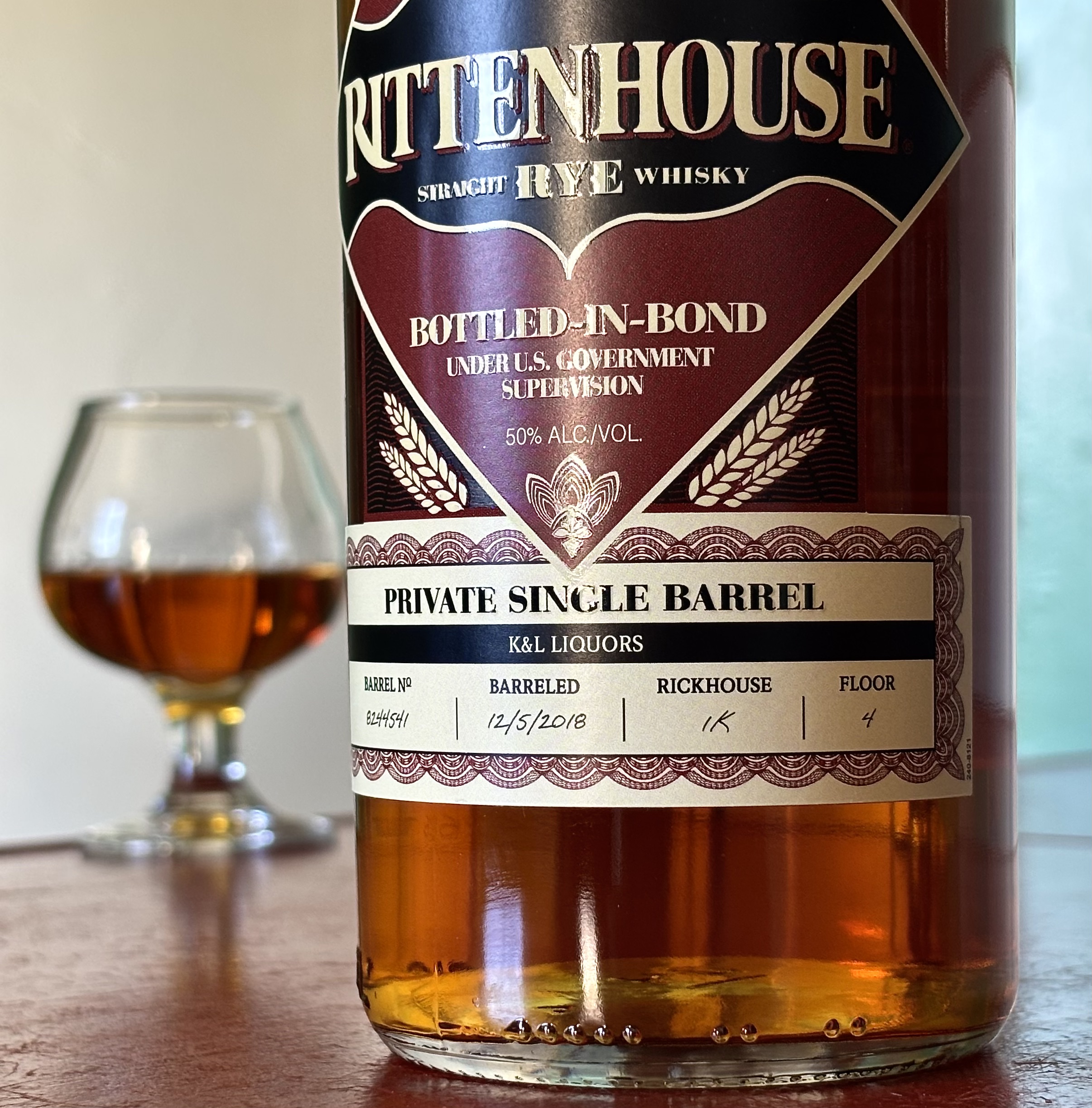 Single Barrel #8244541 selected by K&L (2026)MASH BILL – 51% Rye, 37% Corn, 12% Malted Barley